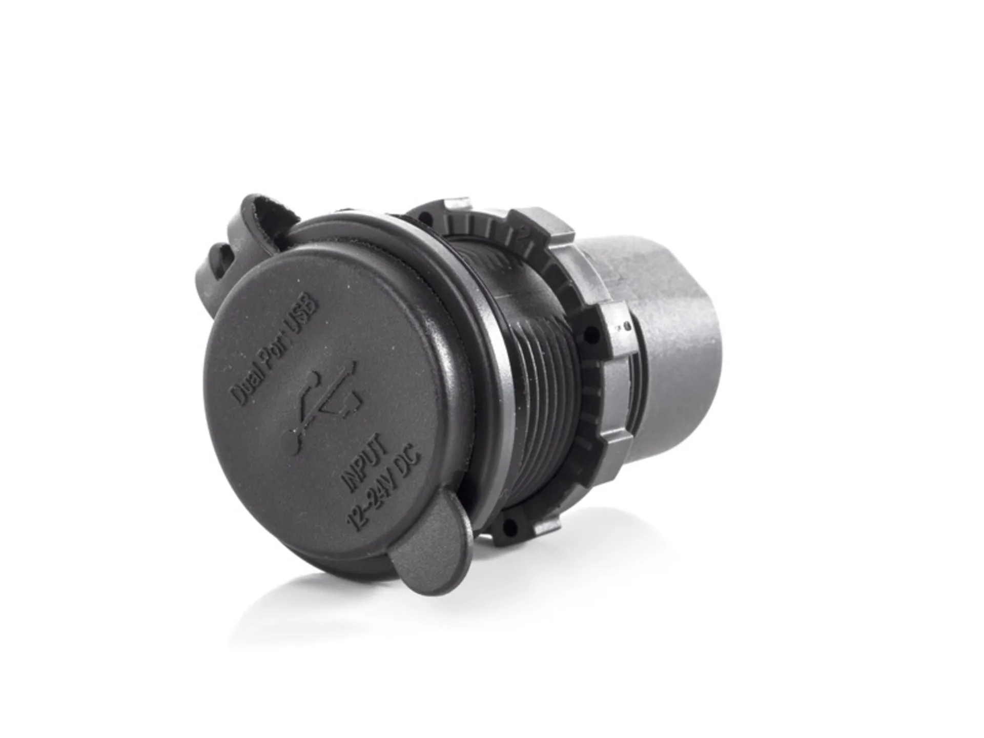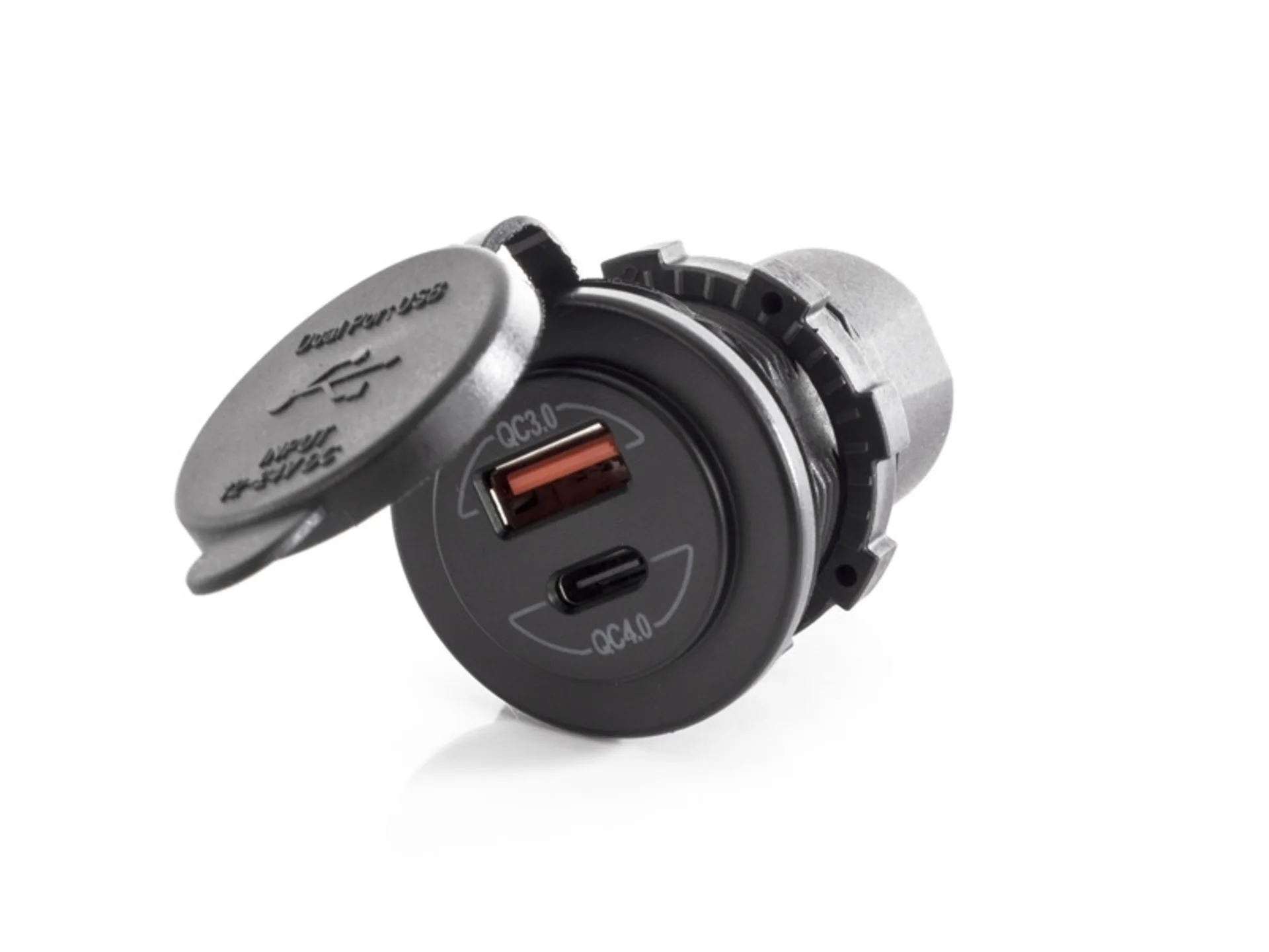 USB Einbausteckdose inkl. Schutzkappe mit zwei USB Ports: 1x USB-A und 1x USB-C.