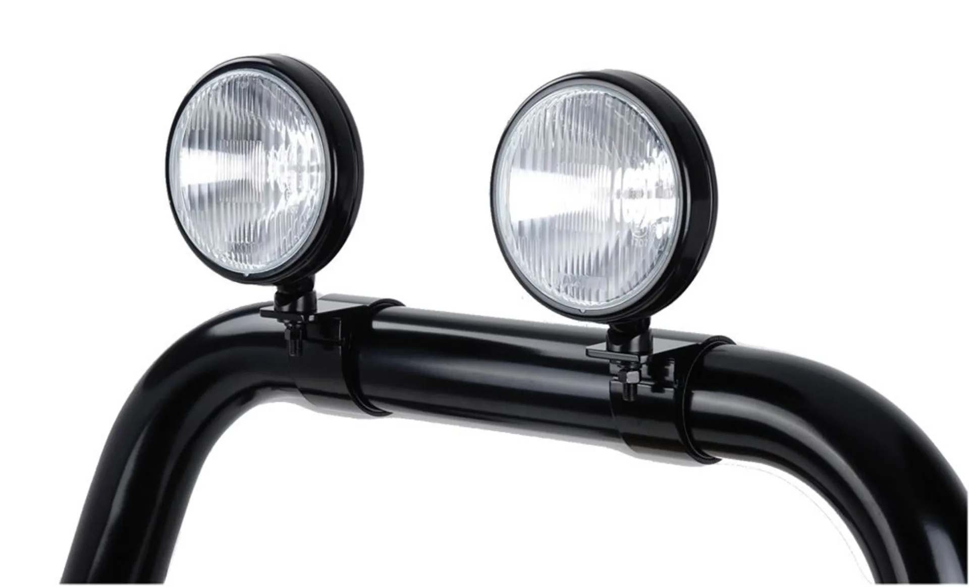 1 Satz mit 2 Stück universellen Rohrschellen-Halterungen passend für alle Frontschutz- und Überrollbügel mit einem Rohrdurchmesser von ø 75-78mm. Ideal für die Befestigung von (Zusatz-)Scheinwerfern, Rundumleuchten, etc.