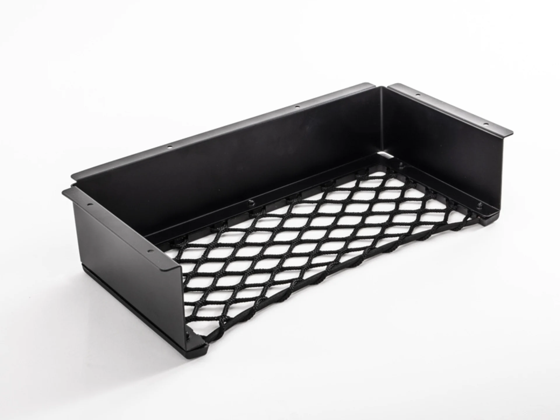Ablagefach Komplettset mit stabilem Aluminiumrahmen und elastischem Netzgewebe, vormontiert und plug and play. Es schafft im Fahrzeug zusätzlichen Stauraum für Utensilien. Bohrungsdurchmesser 4,5 mm.