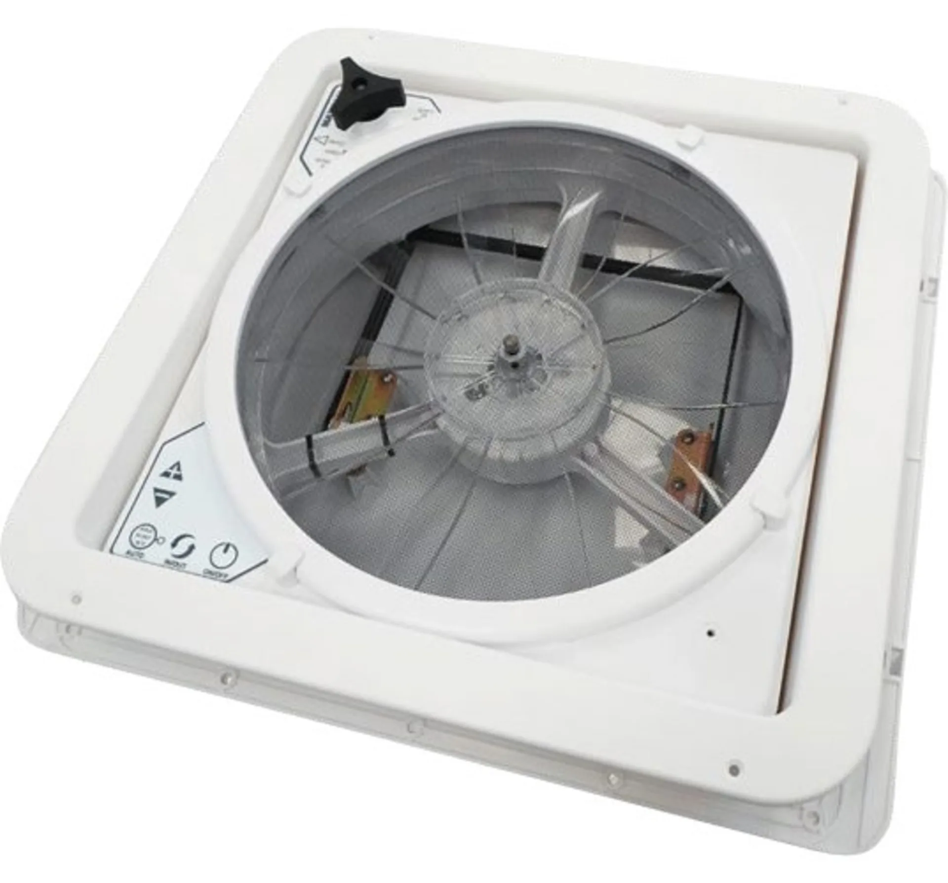 Kann entweder für die Be- und die Entlüftung bei geöffneter Außenhaube oder als Dachventilator mit geschlossener Außenhaube genutzt werden. Der 10-stufige Ventilator schafft bis zu 26 m³ Luftaustausch pro Minute, dabei kann die im Wohnmobil gewünschte Temperatur durch den eingebauten elektronischen Thermostat eingestellt werden. Das abnehm- und waschbare innere Moskitonetz schützt vor Insekten. Das Modell kann auch während der Fahrt eingesetzt werden.