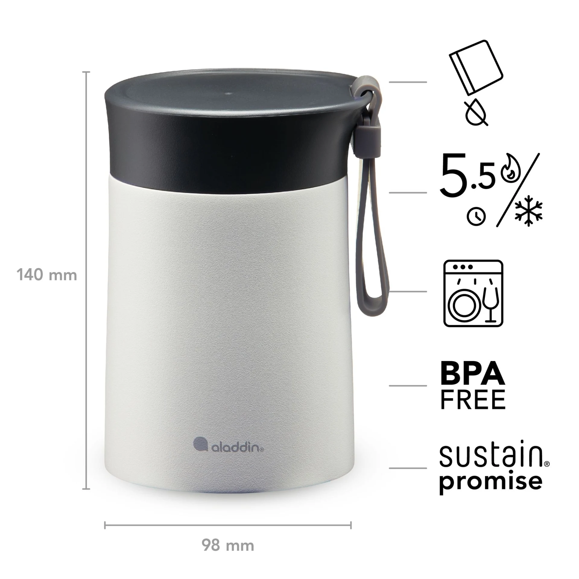 Die große, formschöne Öffnung macht das Speisen besonders angenehm, gleichzeitig sorgt sie für einfaches Füllen und Reinigen. Die doppelwandige Kompakt-Vakuum-Isolierung hält deine Speisen für 5,5 Stunden heiß & 5,5 Stunden kalt.