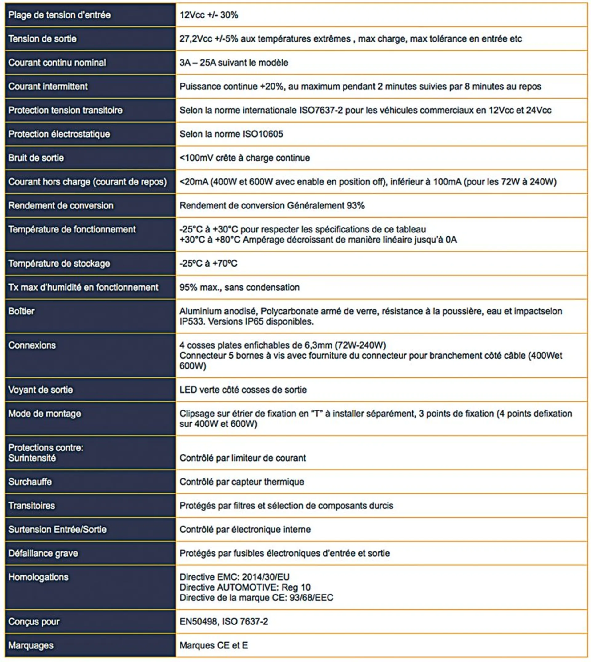 ** Achtung: Leistung des Wandlers immer 20% grösser als der benötigte Strombedarf wählen ** Ein- und Ausgang absichern ** Sicherung kleiner als Maximalstrom wählen **