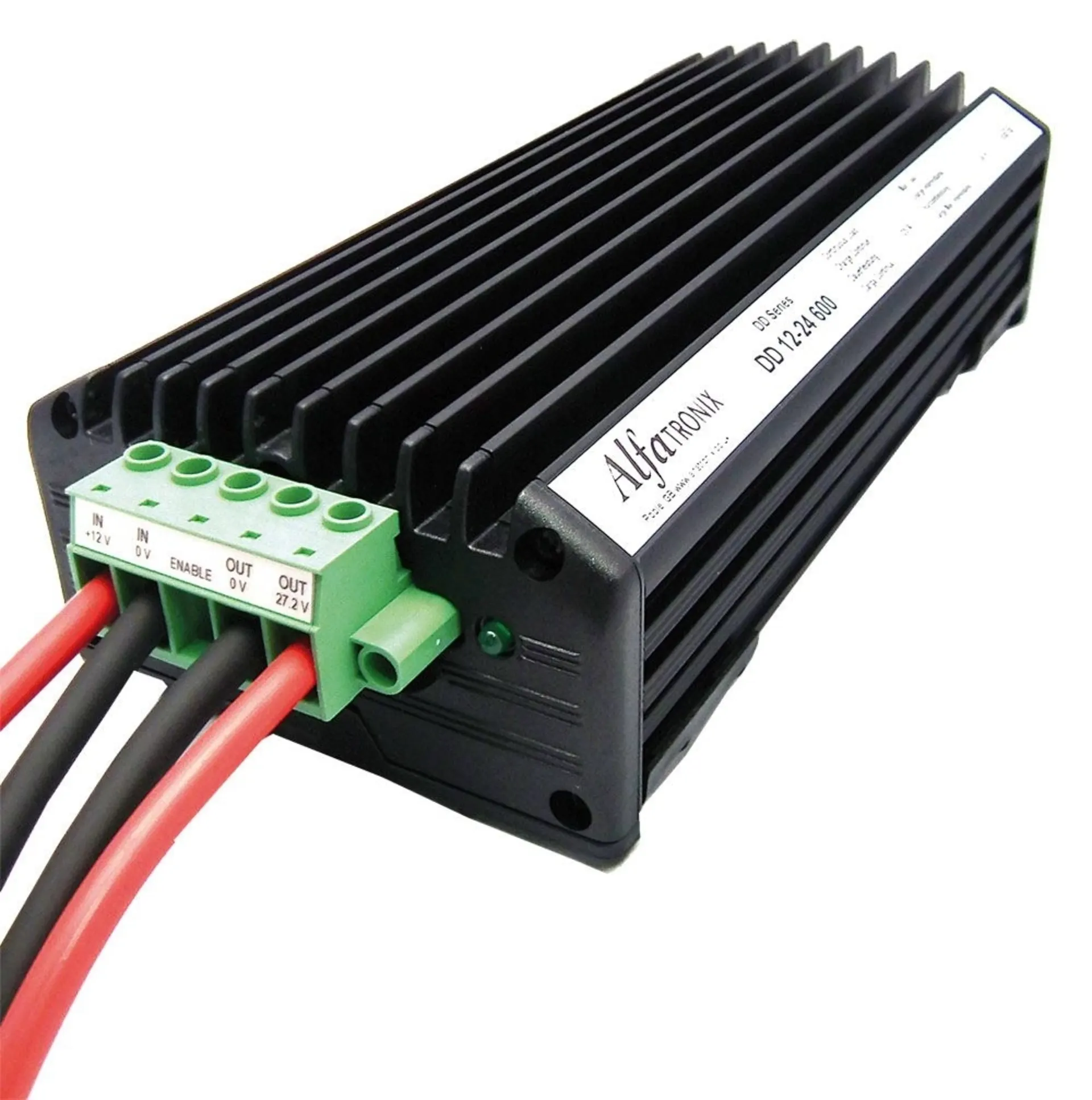 ** Achtung: Leistung des Wandlers immer 20% grösser als der benötigte Strombedarf wählen ** Ein- und Ausgang absichern ** Sicherung kleiner als Maximalstrom wählen ** Anschluss Nr. 3 dient zur Aktivierung des 24 V Ausganges. Brücke zu 12 V Plus Eingang machen oder über externen Schalter ansteuern **