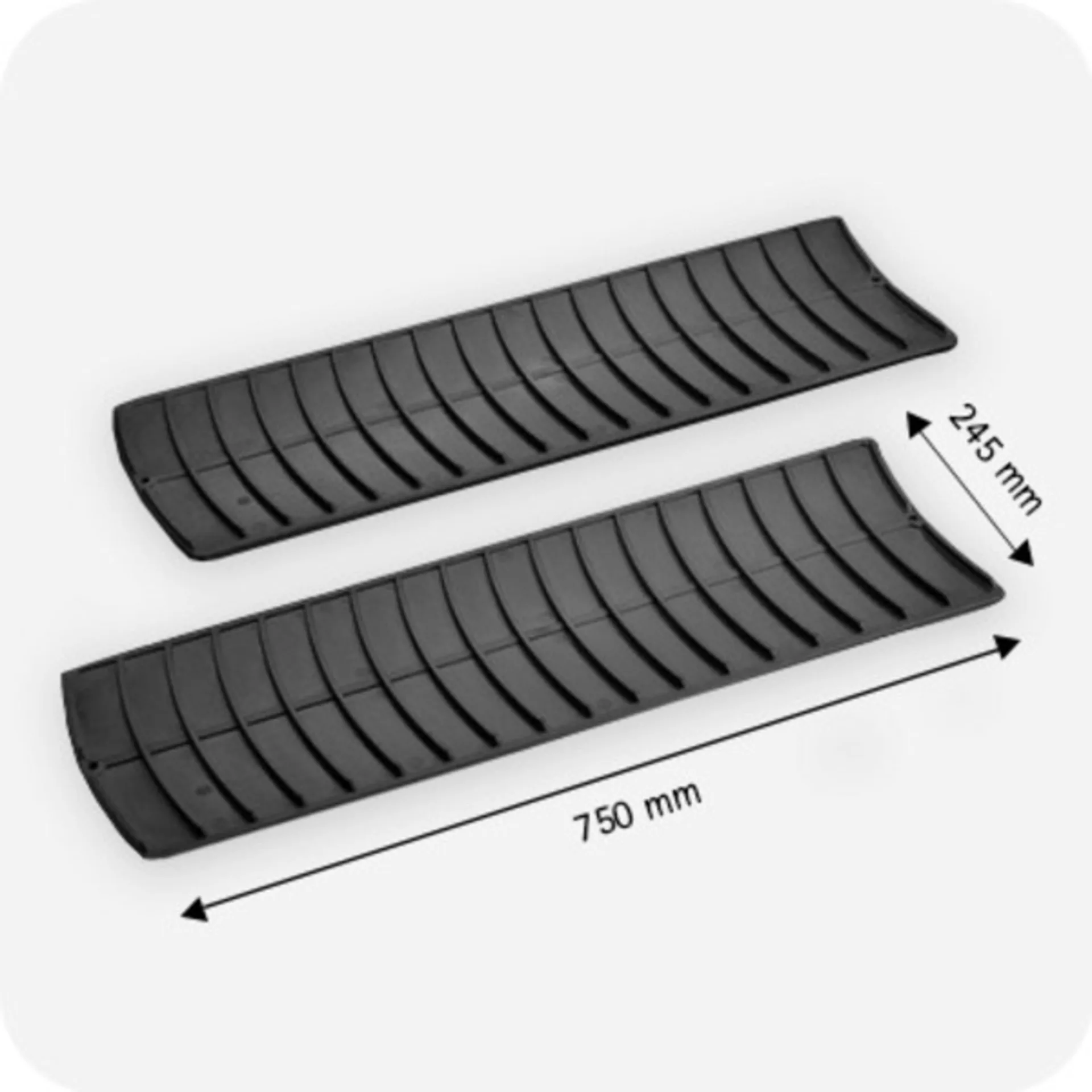 Die Gripmatte wird vor die Antriebsräder gelegt, um ein Rutschen oder Festfahren auf sandiger oder unebener Fläche zu vermeiden. Antirutschprofile gewähren eine hohe Haftung der Räder.