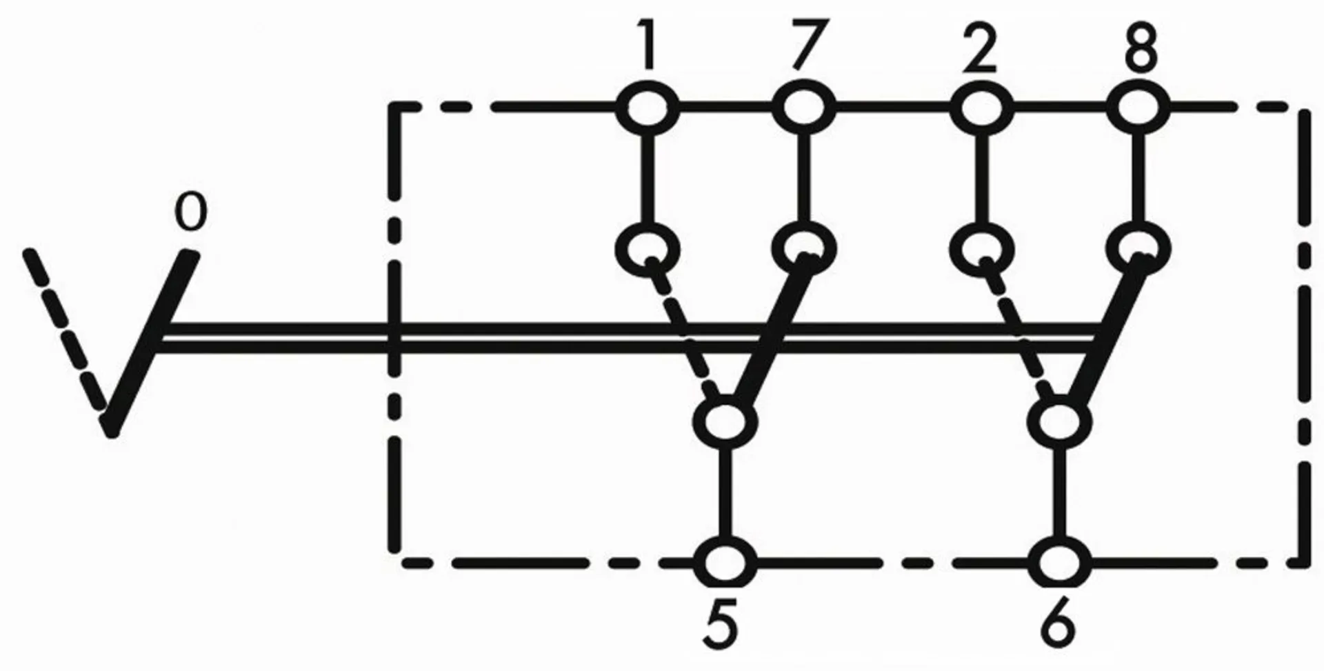 - Umschalter rastend mit zwei Ein- und vier Ausgängen