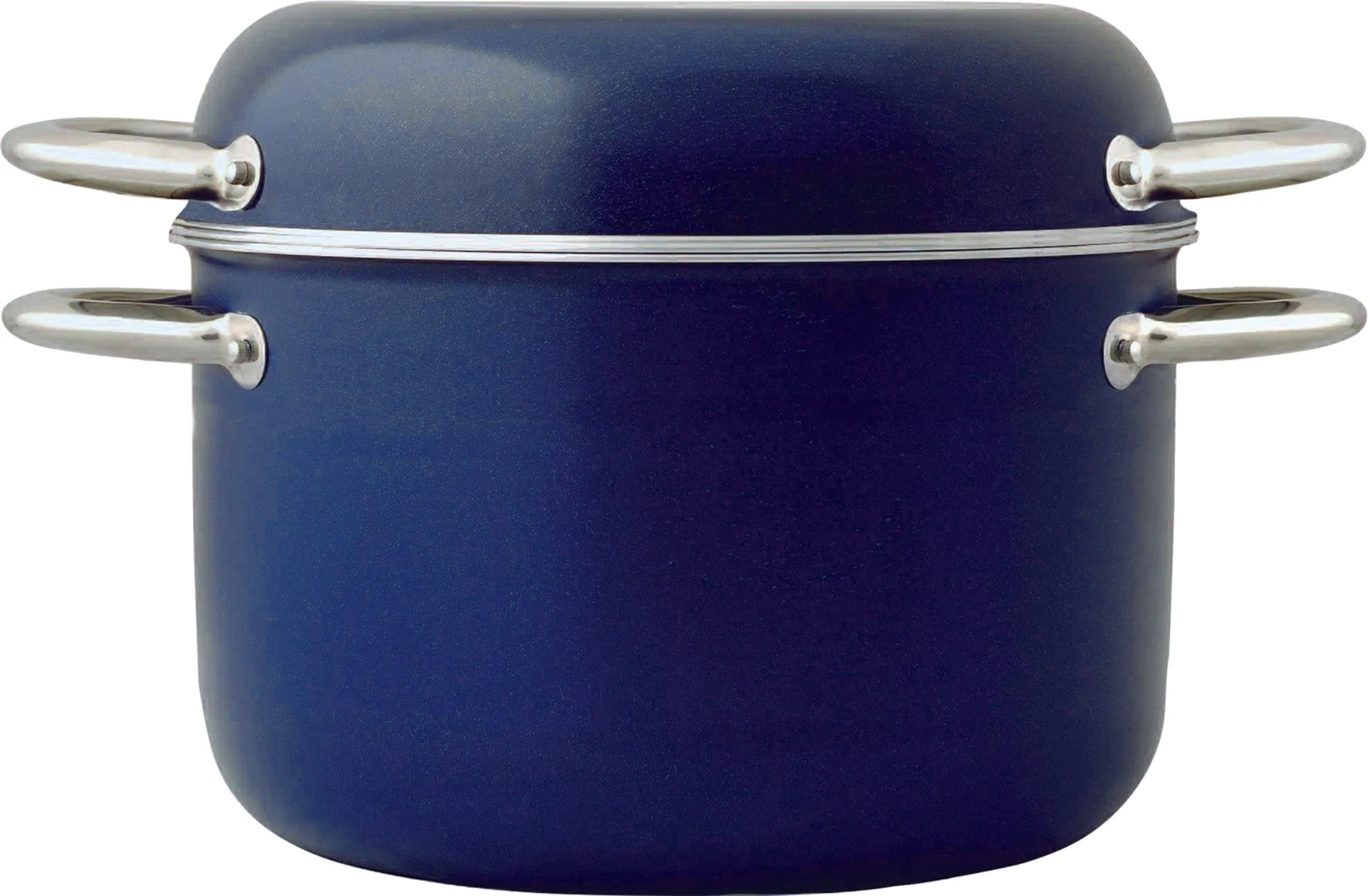 Dieses Topfset überzeugt durch seine Funktionalität und Langlebigkeit. Hergestellt aus robustem Aluminium, sorgt es für eine gleichmäßige Wärmeverteilung beim Kochen. Die hochwertige Antihaftbeschichtung ermöglicht ein müheloses Garen und verhindert das Anhaften von Speisen, was die Reinigung erheblich erleichtert. Ein besonderes Merkmal des Sets ist der große Deckel, der mit praktischen Abtropflöchern ausgestattet ist. Dieser Deckel kann nicht nur zum Schließen der Töpfe verwendet werden, sondern dient auch als Abgießhilfe. Dank des stapelbaren Designs lässt sich das Topfset platzsparend verstauen, ideal für Küchen mit begrenztem Stauraum.