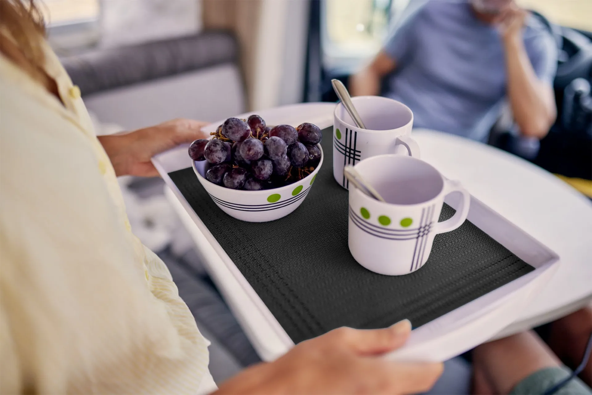 Die Antirutschmatte ist eine vielseitige und praktische Lösung, um Gegenstände im Campingurlaub vor dem Verrutschen zu schützen. Mit ihrer rutschfesten Oberfläche bietet sie einen sicheren Halt für Gegenstände wie Teller, Gläser, Besteck, Schubladen oder auch unter Teppichen, Läufern oder Küchengeräten. Die Antirutschmatte lässt sich einfach bedarfsgenau zuschneiden und ist abwaschbar, was sie besonders pflegeleicht macht. Auch in Schräglage funktioniert die Matte optimal und bietet einen perfekten Rutsch-Stopp.