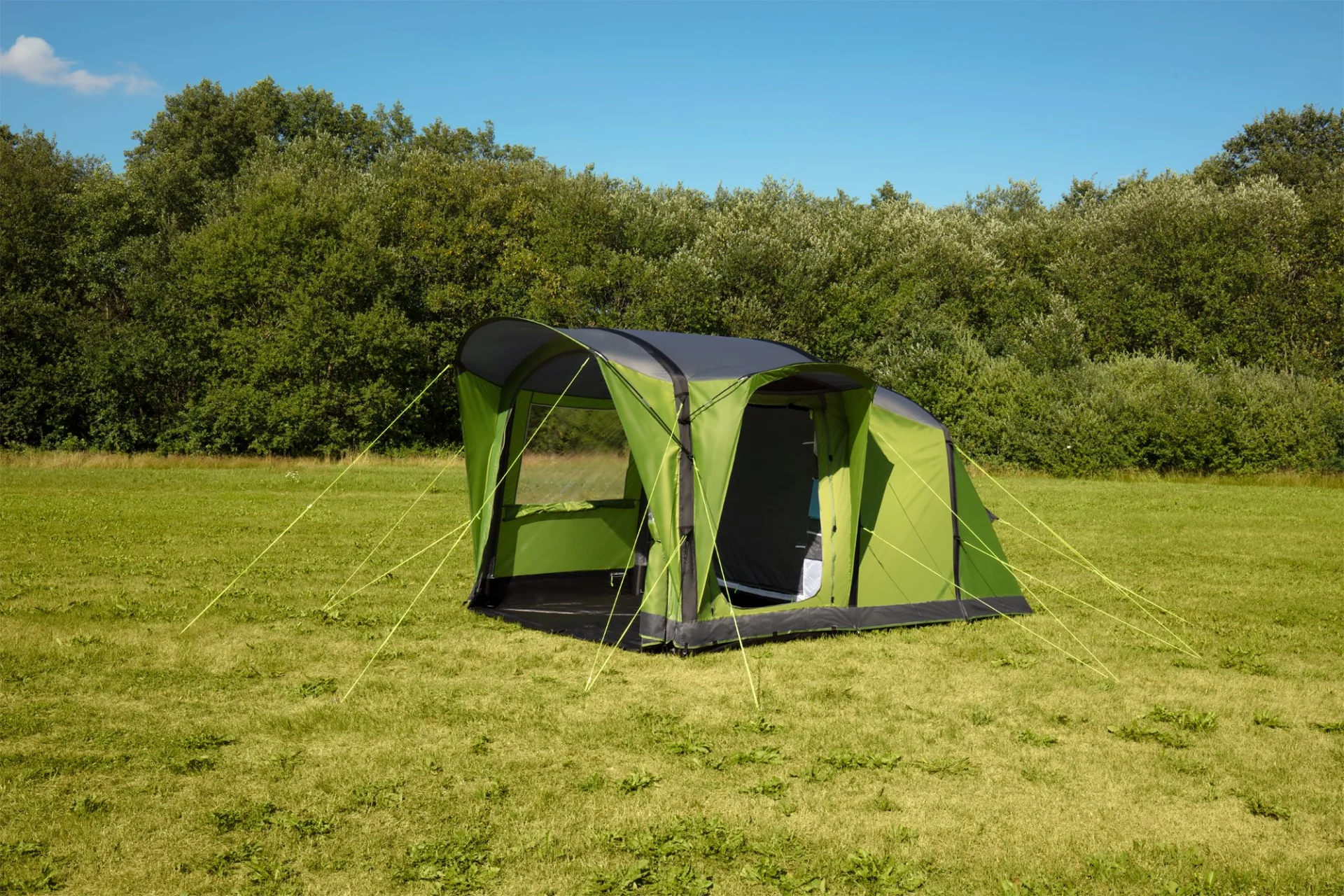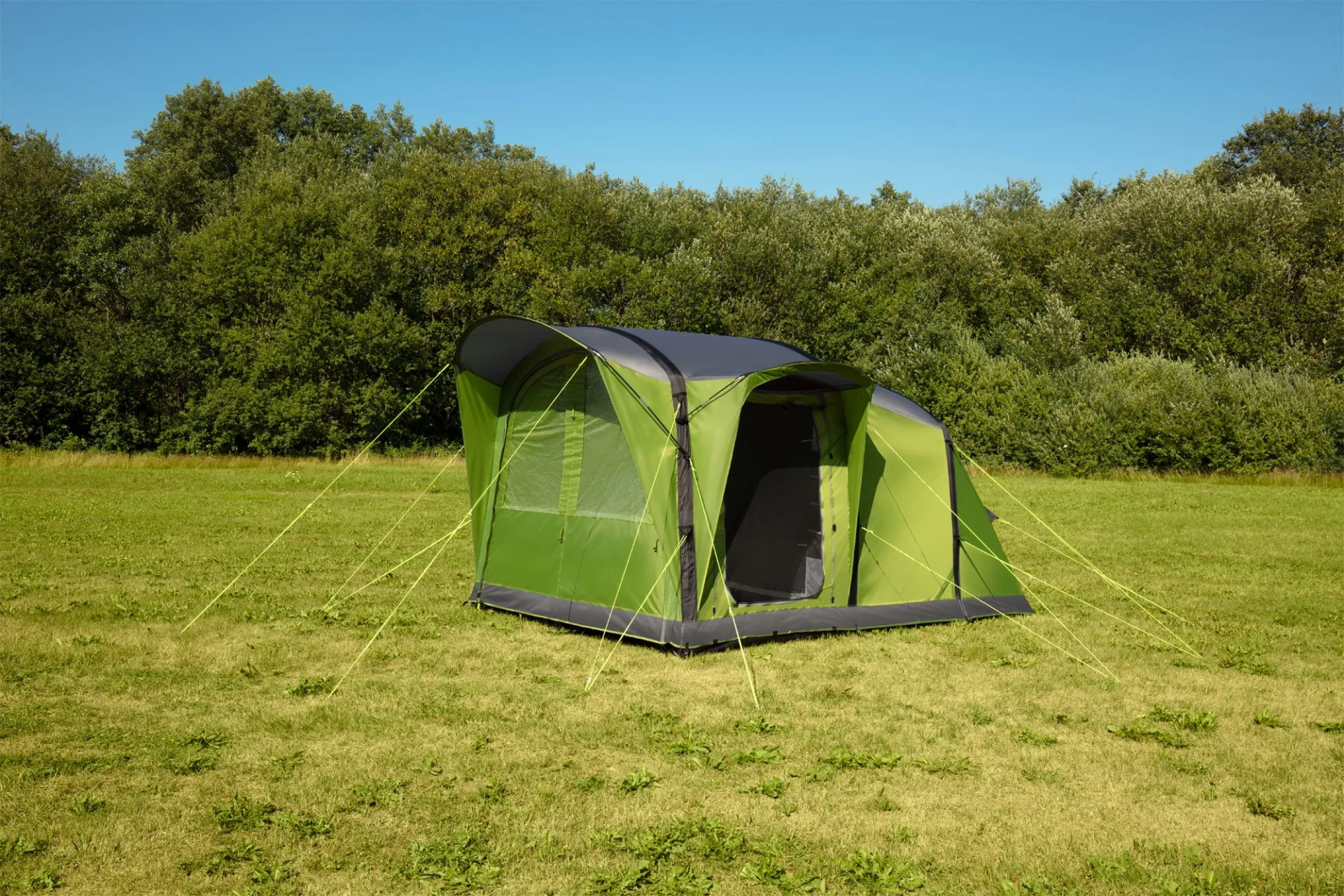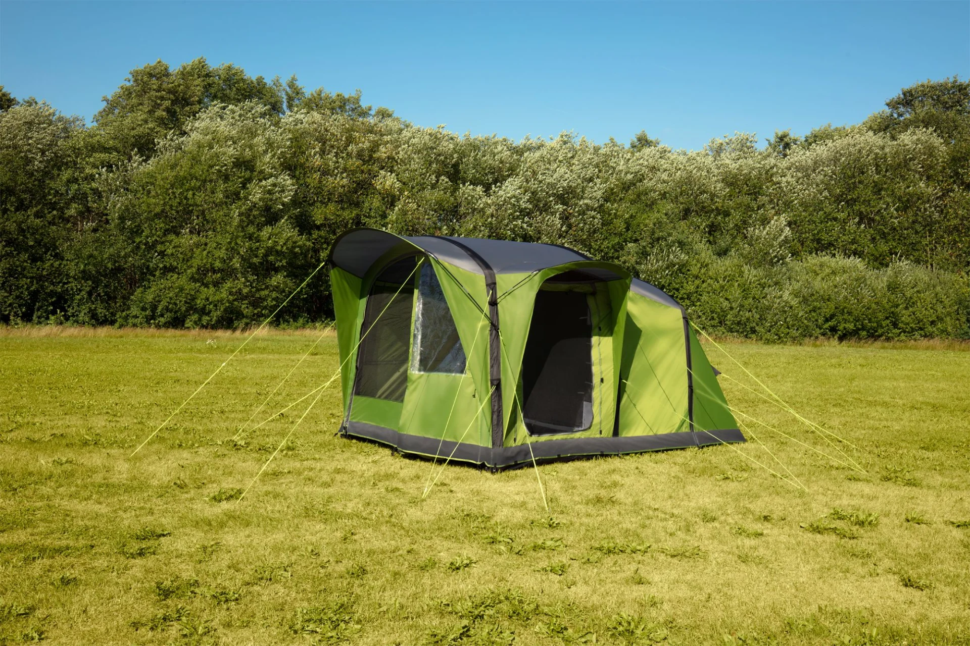 Dieses aufblasbare Zelt lässt sich schnellund einfach aufbauen und bietet durch seine zwei Eingänge, den Vorraum mit Stehhöhe und praktischem Organizer am Innenzelt überraschend viel Platz und Stauraum. Das Vordach kann mit einem Fiberglasstab aufgebaut werden, während das integrierte Luftgestänge innerhalb von wenigen Minuten aufgeblasen ist. Das Zelt bietet Platz für 3 Personen, womit es optimal geeignet ist für kleine Familien, Paare oder einen Kurztrip mit Freunden. Die komfortable Stehhöhe beträgt 210 cm.