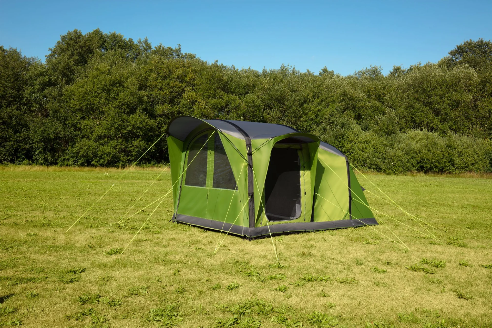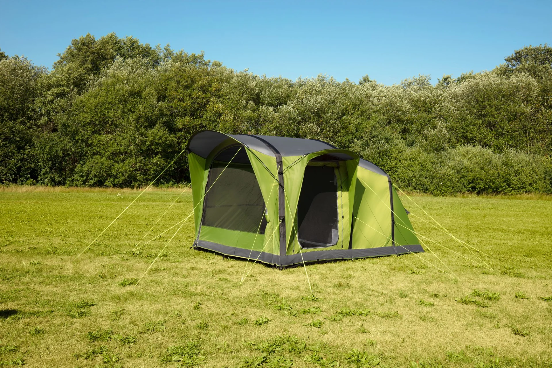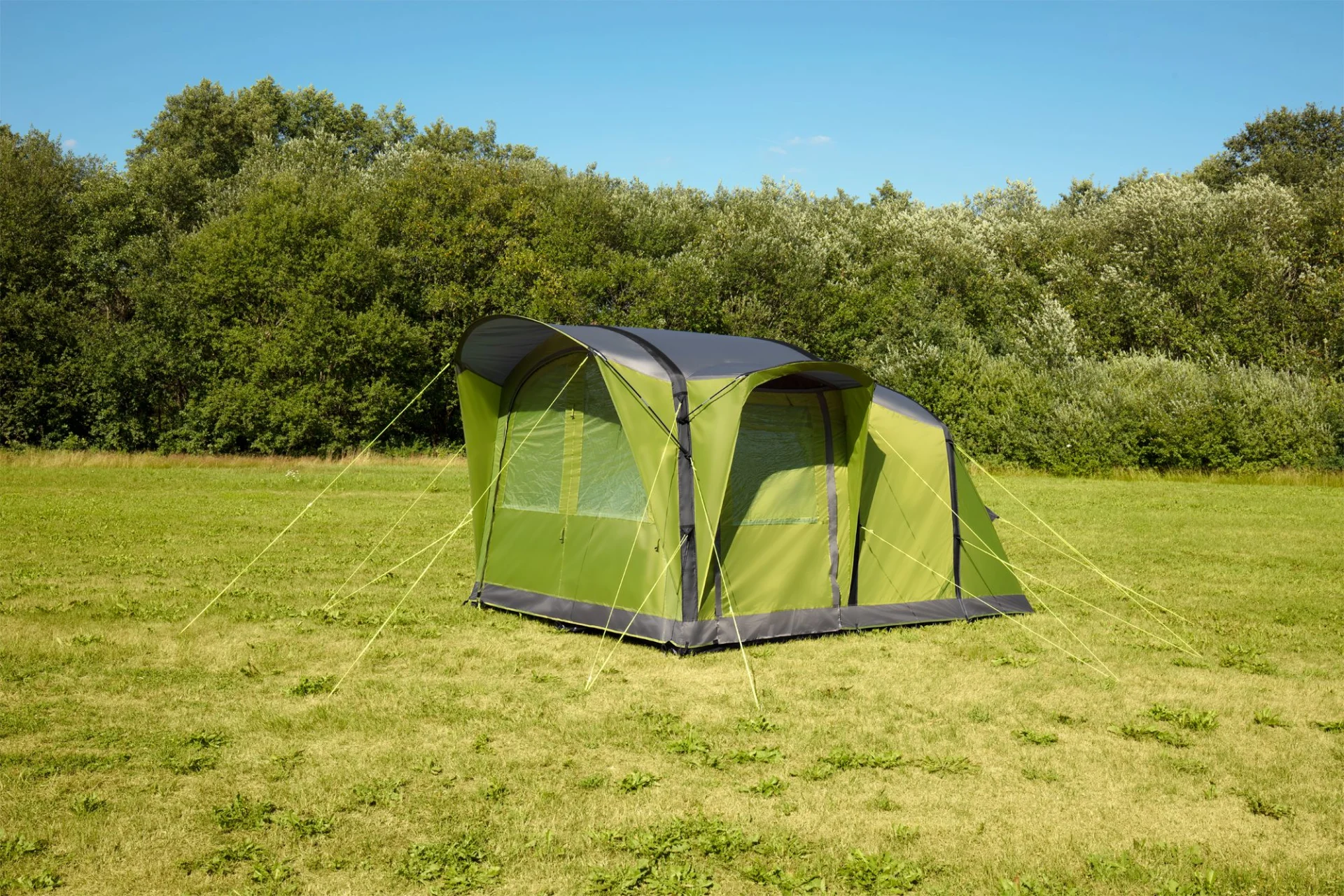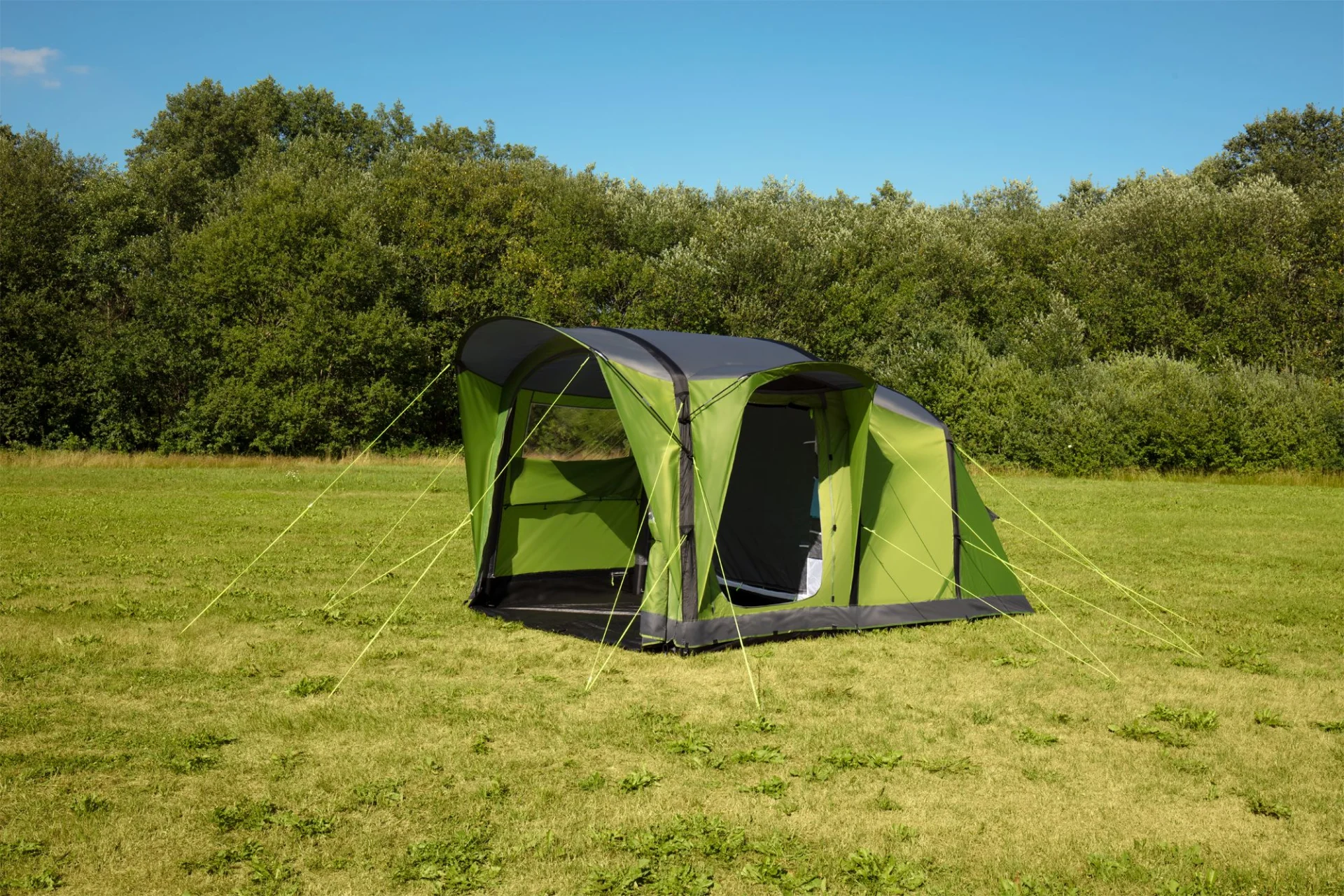Dieses aufblasbare Zelt lässt sich schnellund einfach aufbauen und bietet durch seine zwei Eingänge, den Vorraum mit Stehhöhe und praktischem Organizer am Innenzelt überraschend viel Platz und Stauraum. Das Vordach kann mit einem Fiberglasstab aufgebaut werden, während das integrierte Luftgestänge innerhalb von wenigen Minuten aufgeblasen ist. Das Zelt bietet Platz für 3 Personen, womit es optimal geeignet ist für kleine Familien, Paare oder einen Kurztrip mit Freunden. Die komfortable Stehhöhe beträgt 210 cm.