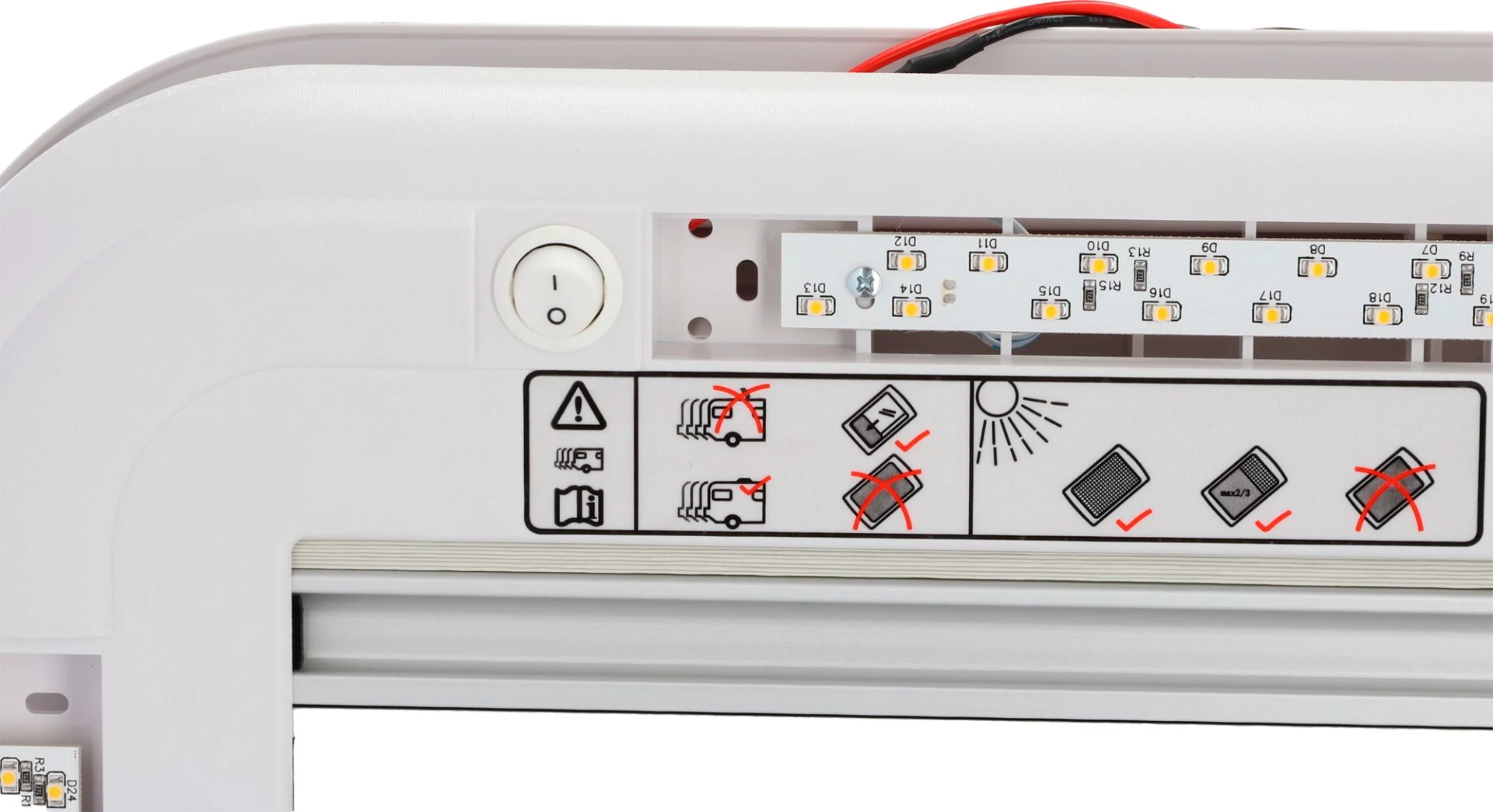 - Verdunkelungsrollo: 100 % Polychlorid – lichtundurchlässig, abwischbar