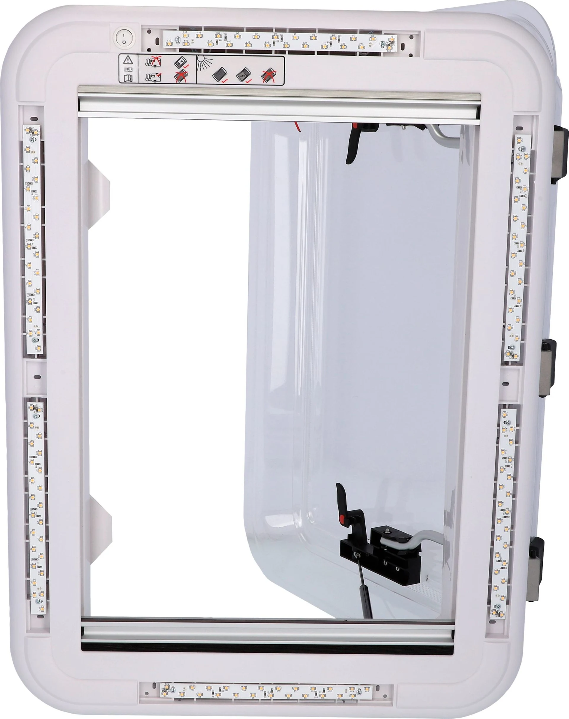 Die Berger Dachhaube 70 x 50 Transparent ist die clevere Belüftungs- und Lichtlösung für Wohnmobilen, Wohnwagen oder anderen Fahrzeugen mit einem Dach verbaut werden kann. Mit dem Bügel lässt sich die Haube leicht öffnen und schließen. Sie wird zusammen mit einem stufenlos verstellbaren Moskitonetz, Verdunkelungsrollo und LED´s (nur bei Artikel 750103) geliefert, um den Komfort und die Funktionalität zu verbessern. Der Verdunklungsrollo dient dazu, das Tageslicht im Innenraum zu reduzieren und vollständig abzudunkeln. Optimal mit der stufenweisen Einstellung des Rollos.