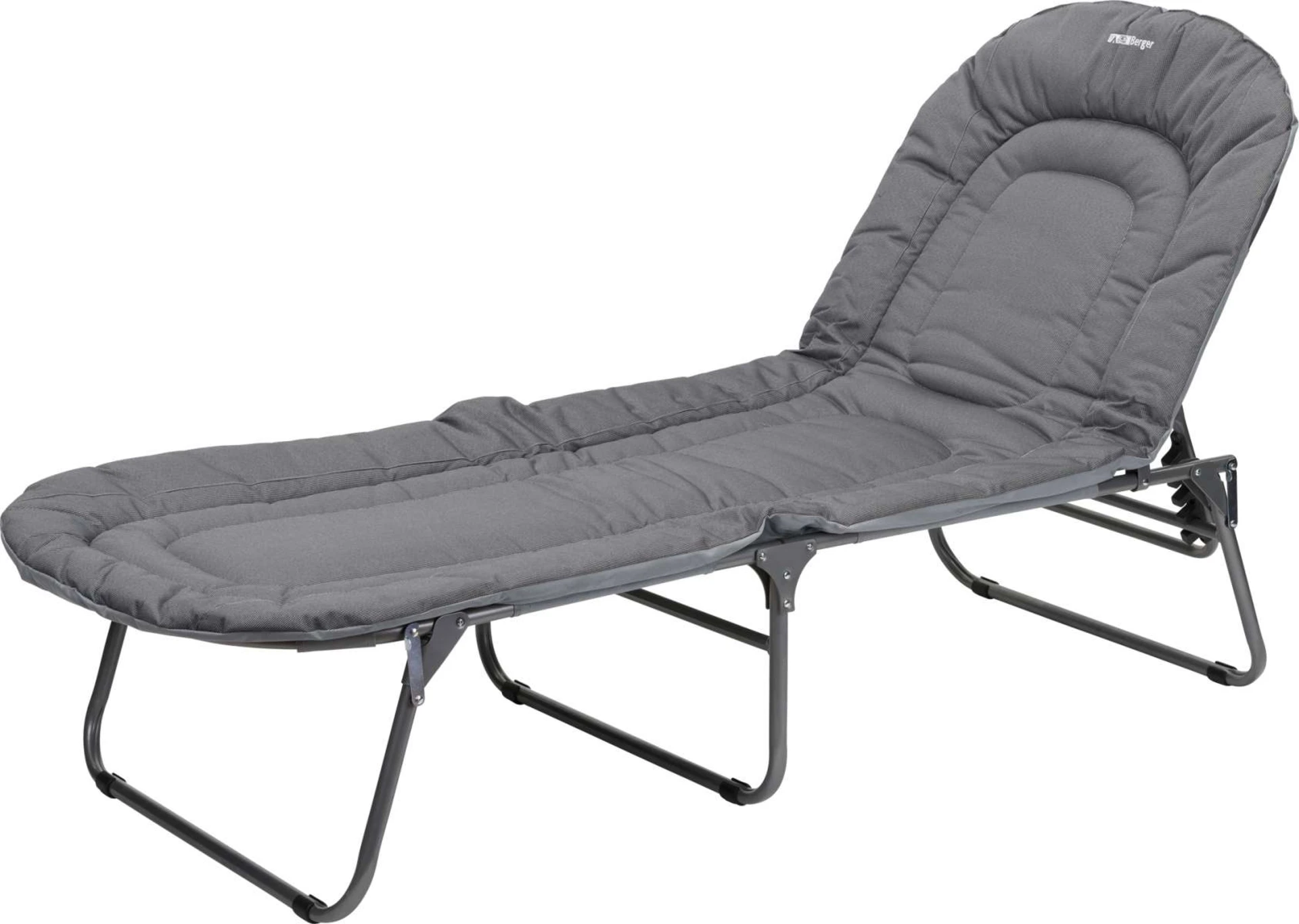 Eine sehr bequeme Campingliege, mit starkem Stahl-Rundrohrgestänge und weich gepolstertem Bezug. Die robuste Liege ist bis zu 120 Kilogramm belastbar und mit einer Länge von 198 Zentimetern auch für große Menschen geeignet. Inkl. Tragetasche (100 % Polyester).
