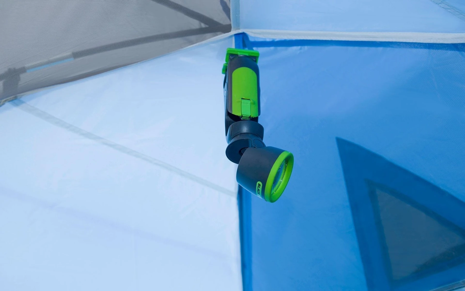 Da das Zelt nur 4,6 Kilogramm wiegt, kann es leicht als Trekkingzelt genutzt werden. Trotz des geringen Gewichtes bietet es ausreichend Platz für drei Personen. Das Zelt verfügt über drei Dauerbelüftungen und zwei Fenster im Eingangsbereich. Im Inneren gibt es einen praktischen Organizer, in dem viele Kleinigkeiten verstaut werden können. An der Schlafkabine gibt es eine Moskito-Tür. Die Sitzhöhe im Inneren beträgt 135 Zentimeter.