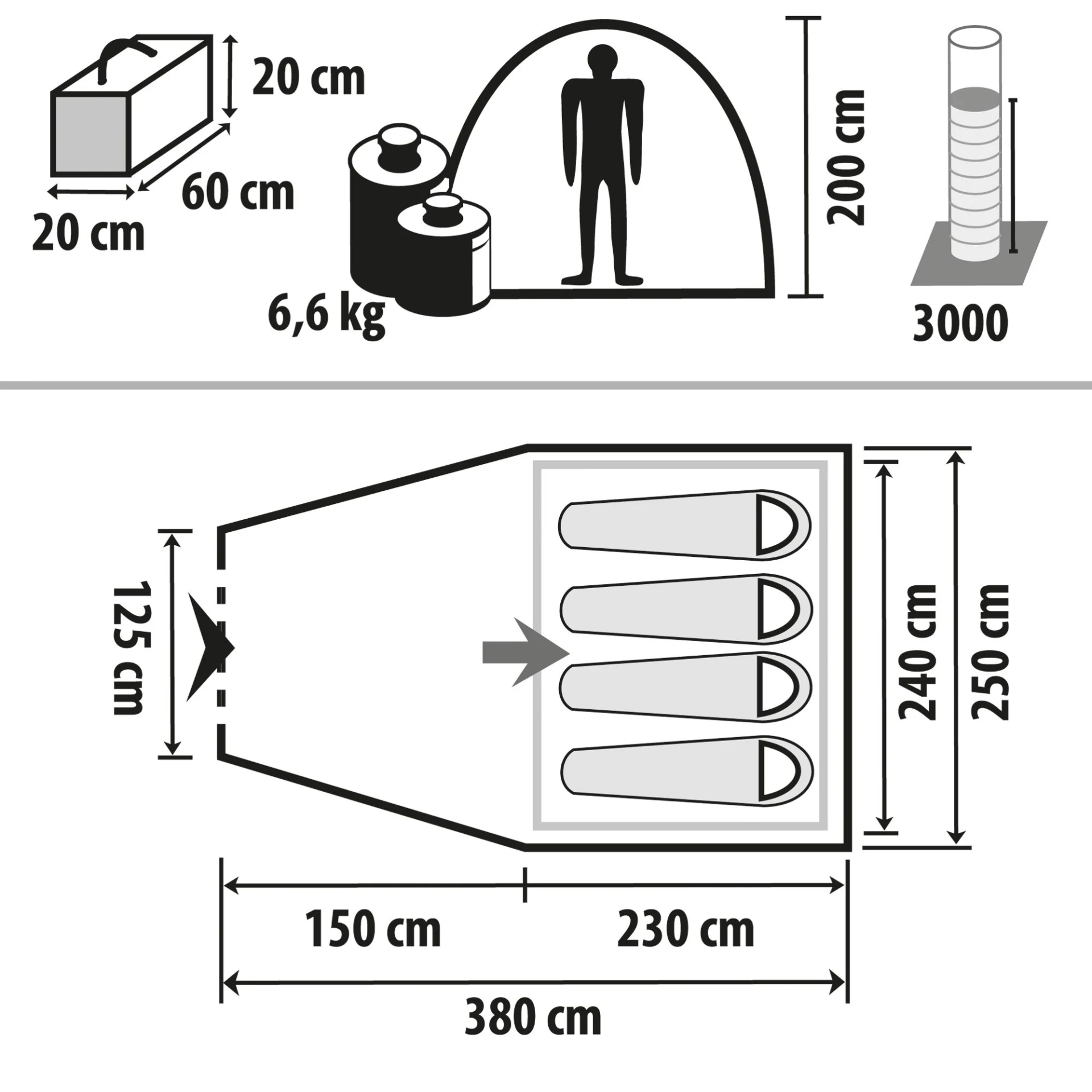 • Innenzelt: 100 % Polyester, atmungsaktiv