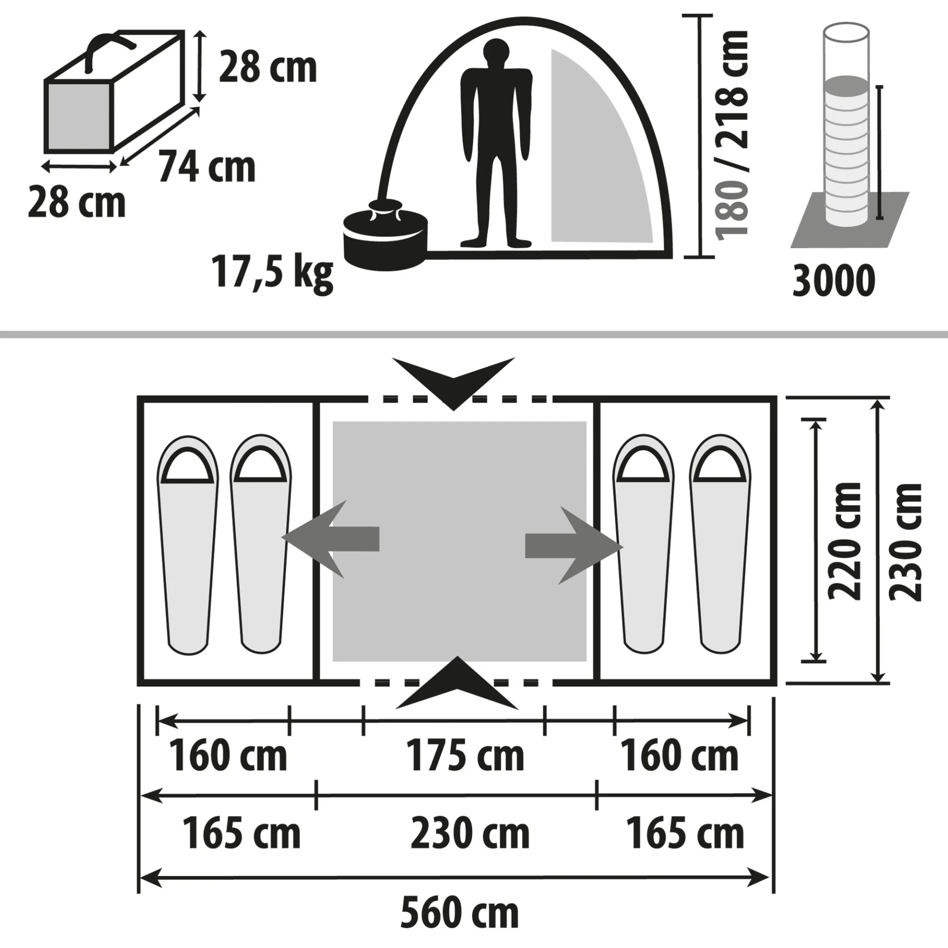 - Innenzelt: 100 % Polyester, atmungsaktiv
