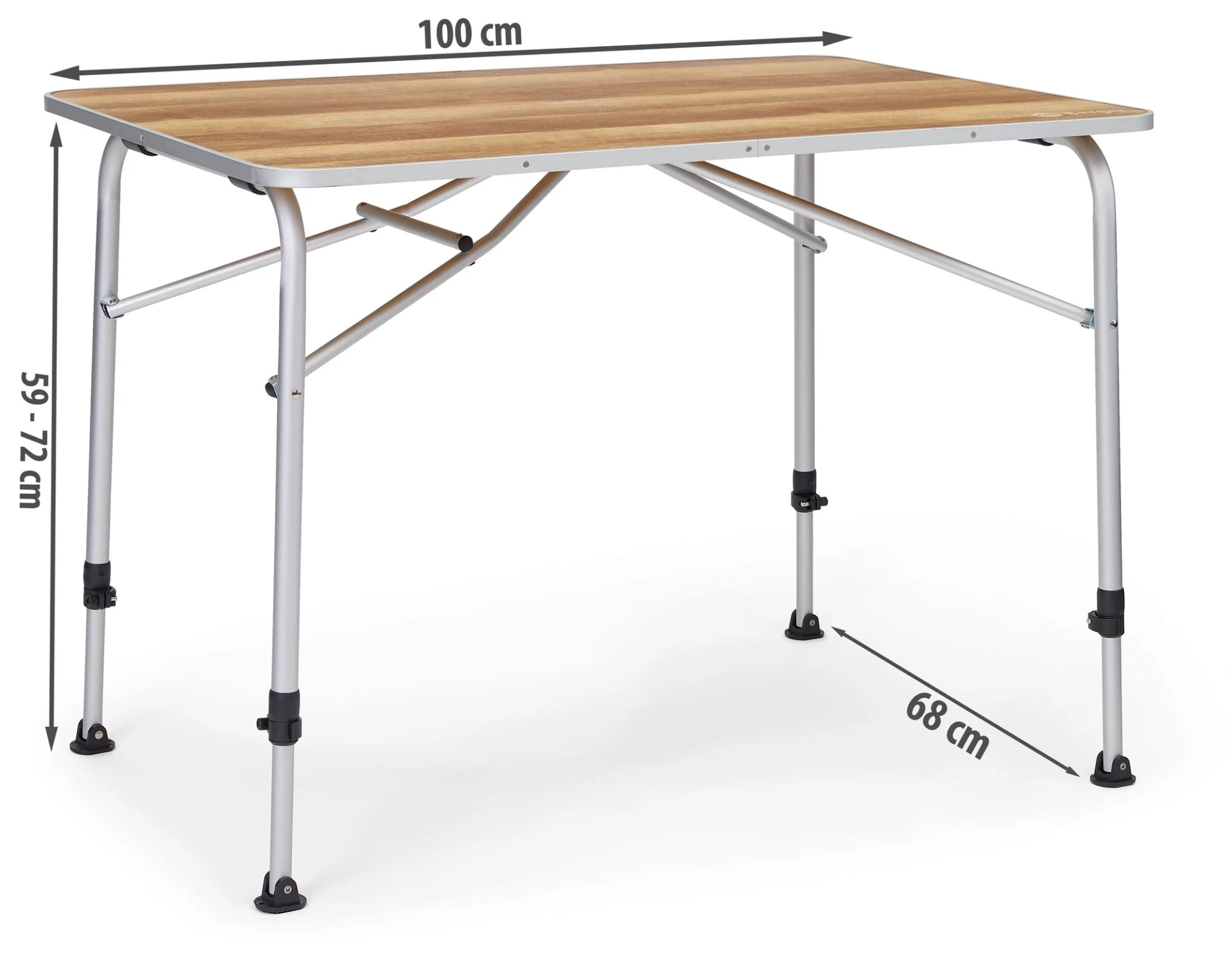 Der Berger Livenza Campingtisch ist ein hochwertiger Campingtisch in Holzoptik, der besonders durch seine Stabilität und sein geringes Gewicht überzeugt. Dank der höhenverstellbaren und großflächigen Tischbeine, kann der Tisch auch auf unebenen Untergründen stabil aufgestellt werden. Die abgerundeten Ecken der Tischplatte sorgen für mehr Sicherheit und reduzieren das Verletzungsrisiko.
