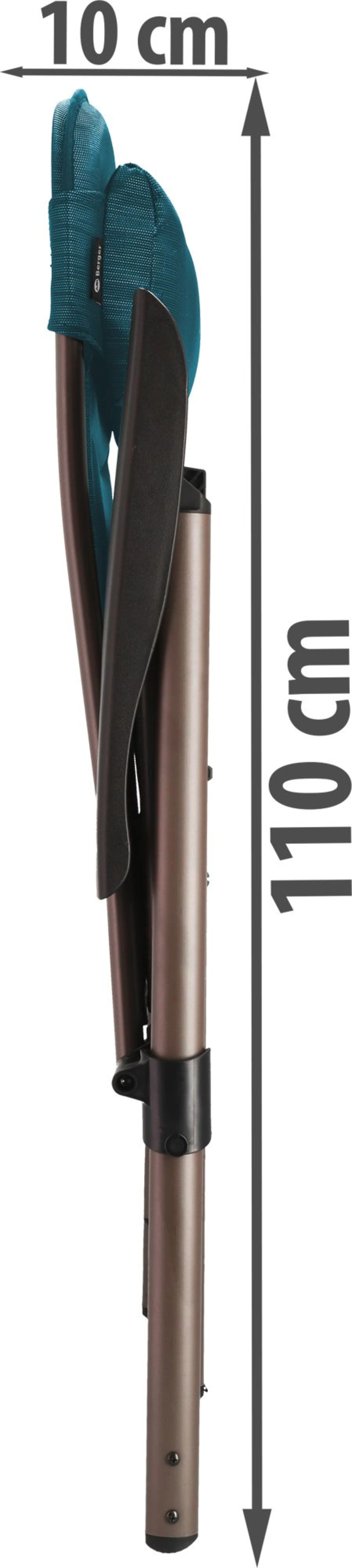 Der Berger Klappsessel Slimline ist ein sehr leichter und komfortabler Campingstuhl. Er überzeugt mit einem hohen Sitzkomfort durch den gepolsterten Bezug, dem abnehmbaren Kopfkissen und der 5-fach verstellbaren Rückenlehne. Das geringe Gewicht und das kleine Packmaß sorgen für einen leichten Transport und machen den Berger Klappstuhl Slimeline zu einem perfekten Begleiter im Campingurlaub. Ein absoluter Hingucker auf jedem Campingplatz sind die verschiedenen Polsterfarben.