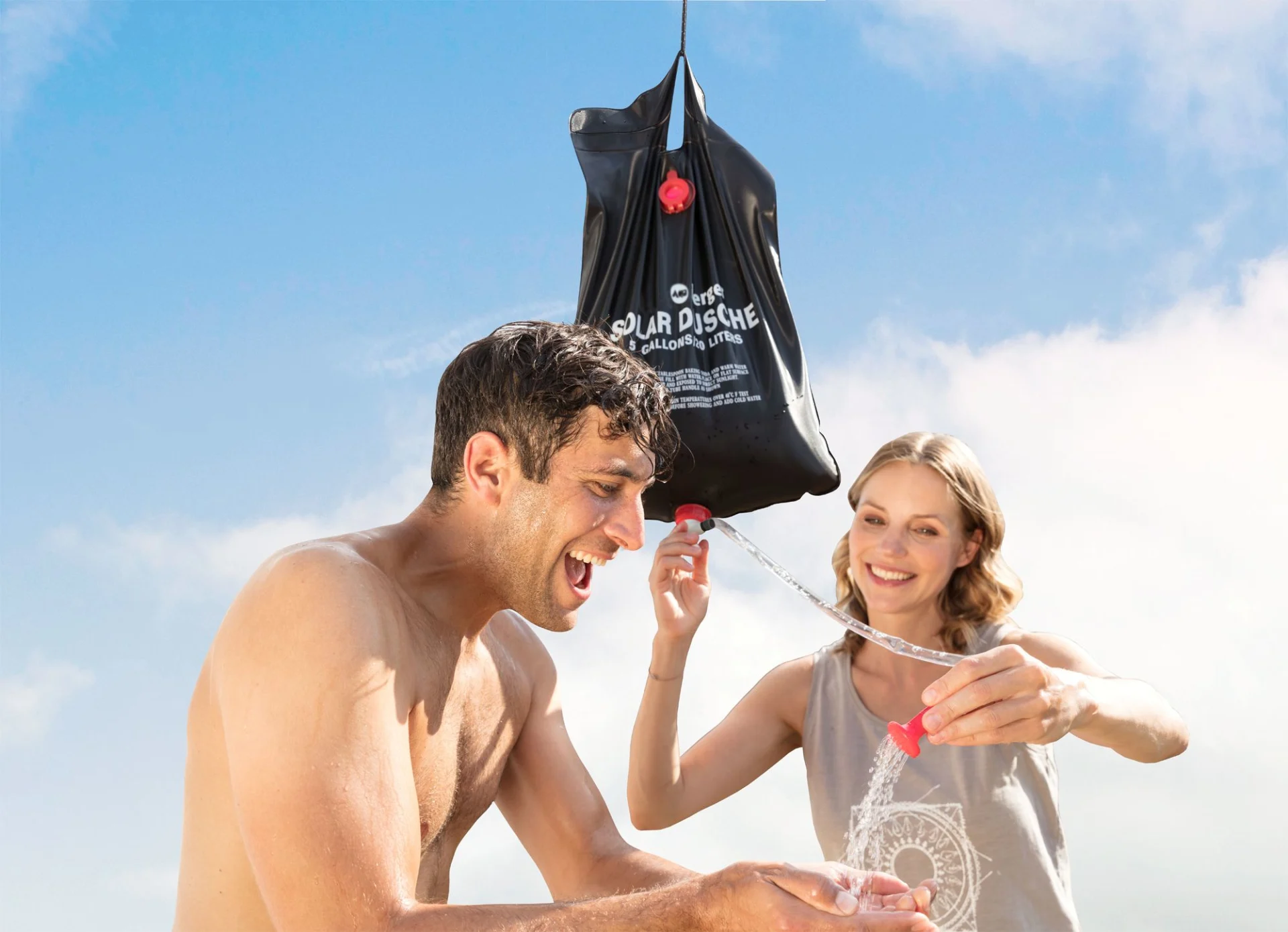 Die Berger Solardusche besteht aus recyclebarem Polychlorid und fasst problemlos 20 Liter Wasser und sorgt somit für angenehmes Duschvergnügen. Befestige die Dusche einfach mithilfe des Tragegriffs und der Leine (1 Meter) an einem Ast oder Ähnlichem. Nach etwa 2-3 Stunden hat sich das Wasser im Inneren des Duschbeutels aufgeheizt (bis zu ca. 50° C möglich) und einer wohltuenden Dusche steht nichts mehr im Wege. Durch den Absperrhahn kannst du die Wassermenge zudem ganz einfach regeln. Dank der einfachen Handhabung und des kleinen Packmaß ist die Solardusche perfekt geeignet zum Campen, Wandern oder auch für die Anwendung im eigenen Garten.