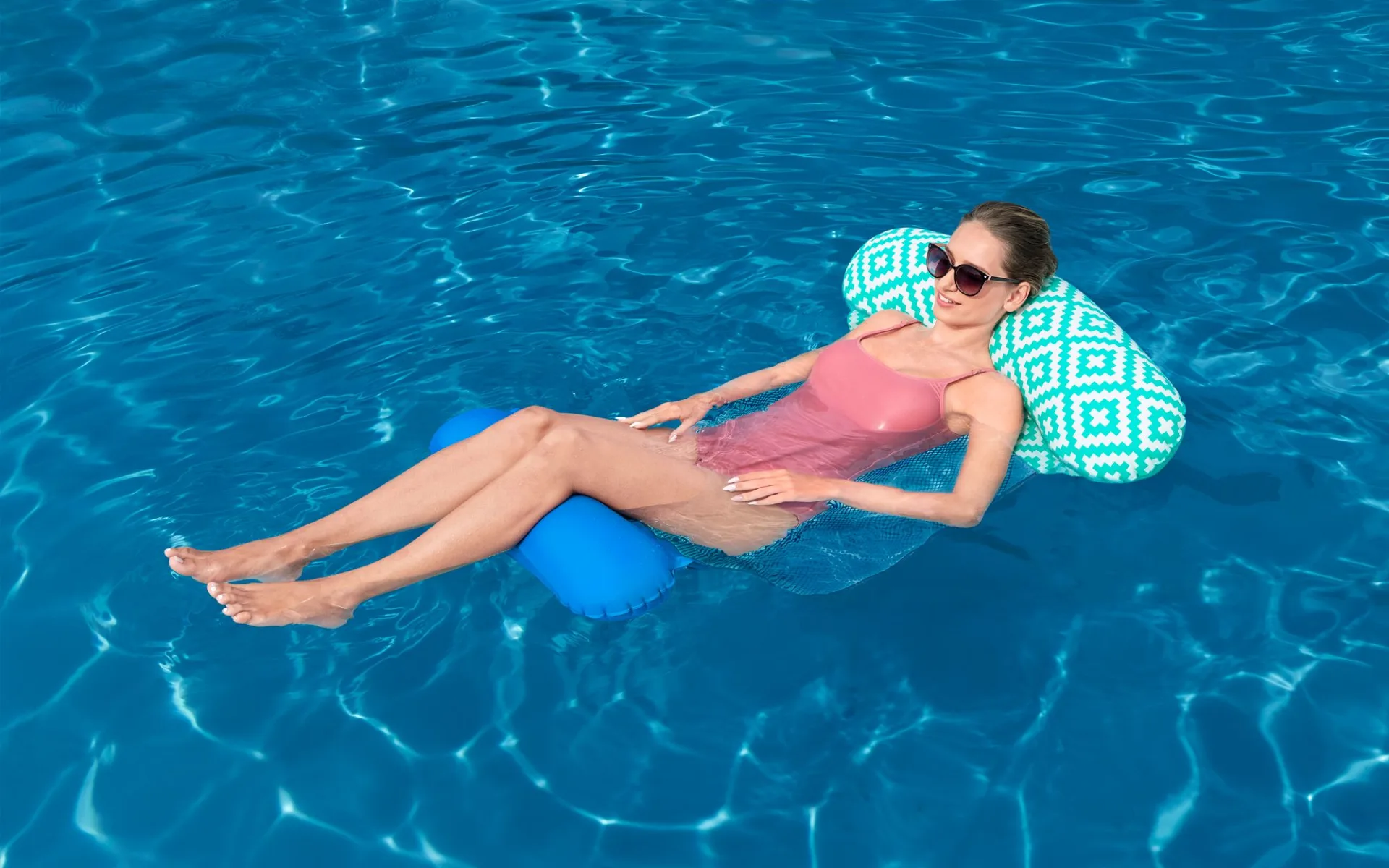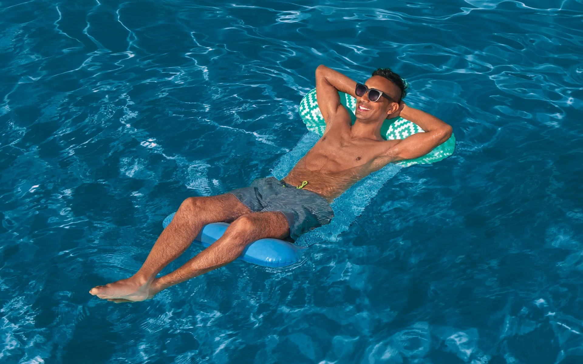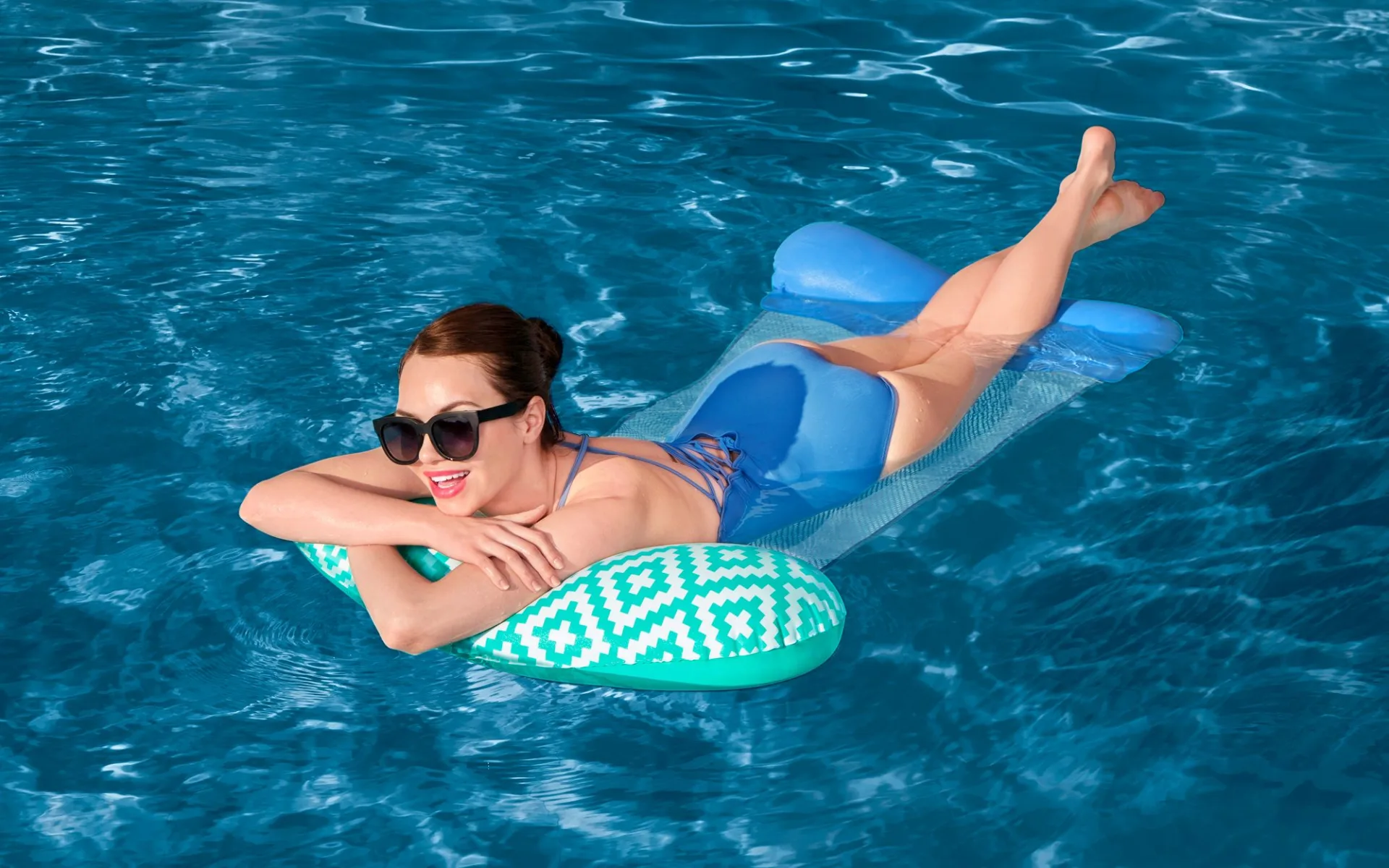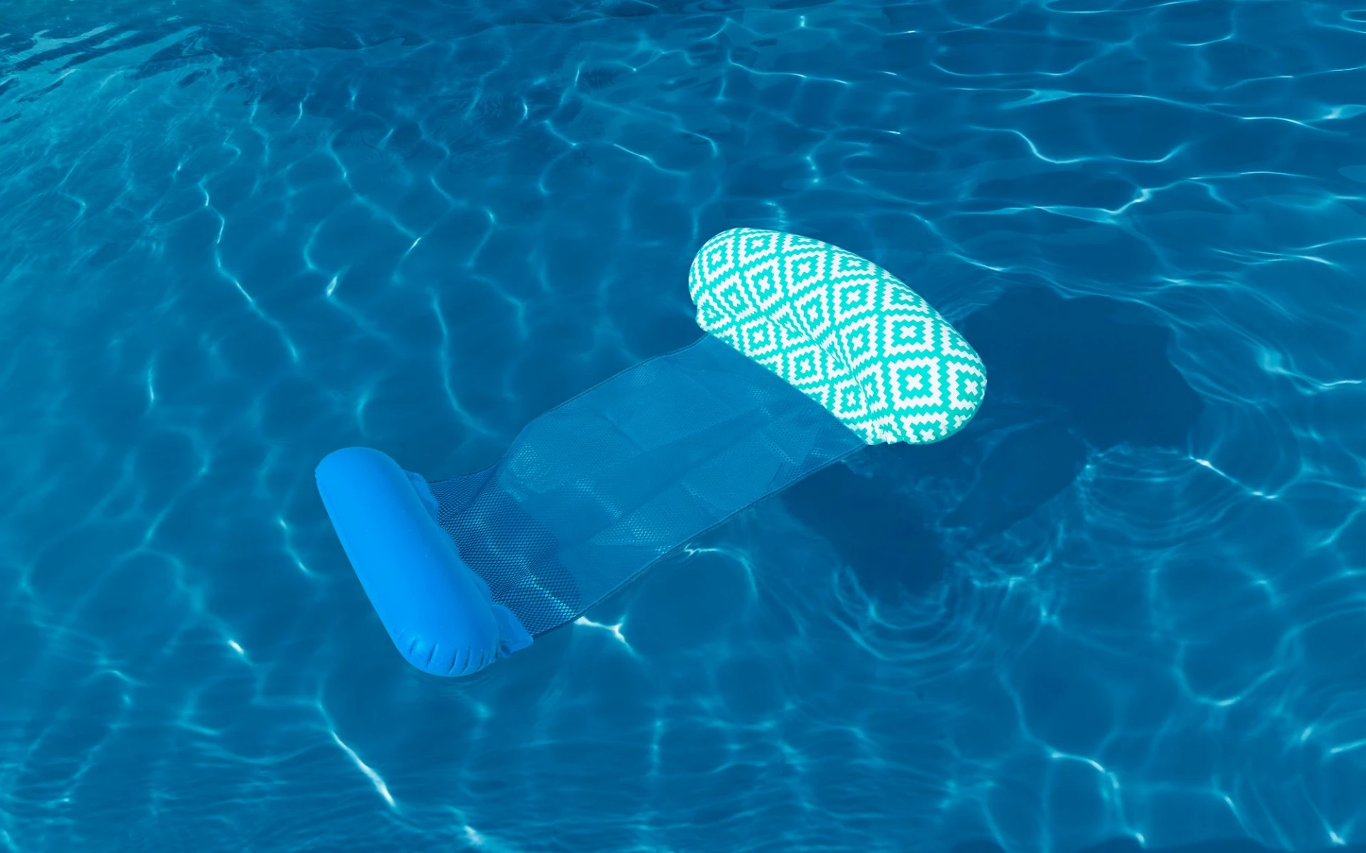 Lehne dich zurück, entspanne dich und tanke neue Energie, während du dich auf der Comfort Plush™ Pool-Hängematte von Bestway® dahintreiben lässt