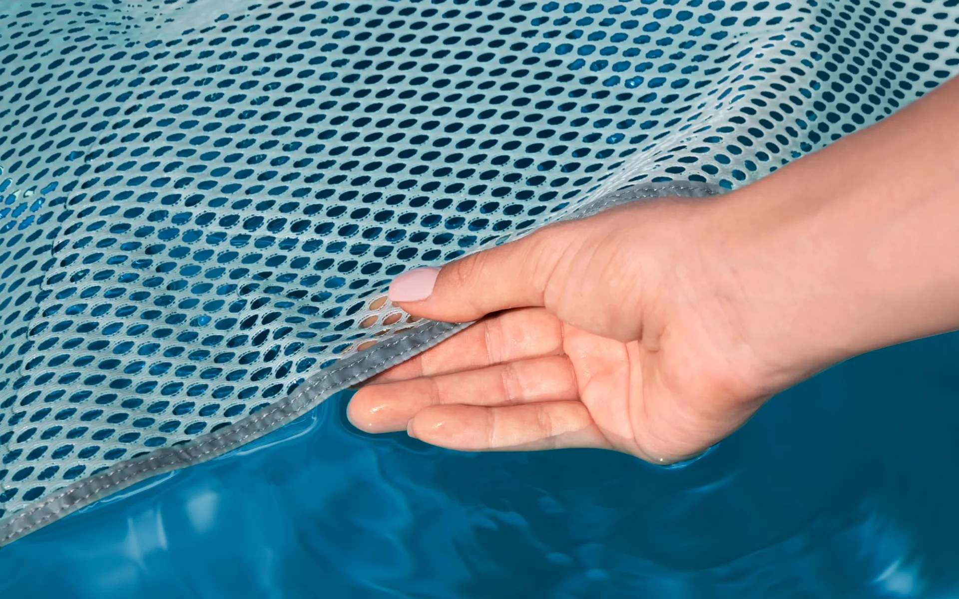Das hochwertige, samtartige Material verleiht der Hängematte eine glatte und komfortable Textur - perfekt für einen langen Tag am Pool! Das besondere Material ist ideal für warme Tage, da es effektiv ein zu starkes Aufheizen der Oberfläche verhindert. Sobald die Hängematte Kontakt zu Wasser hat, intensivieren sich die Farben, was so für einen auffälligen Effekt sorgt. Die CoolDown™ -Liegefläche hält dich knapp unter der Wasseroberfläche, sodass du an sonnigen Tagen stets eine angenehme Abkühlung genießen kannst. Das netzartige Material ist außerdem mit einer langlebigen Beschichtung versehen, um Schäden durch Abschürfungen, Schnitte zu verhindern. Dieses innovative Design ermöglicht es dir, den Komfort individuell zu genießen, indem du die Hängematte so nutzt, wie du es möchtest. Die wandelbare 4-in1-Konstruktion bietet dir die Möglichkeit das Produkt als Luftmatratze, Poolsessel, Hängematte oder Sattelsitz zu verwenden. Die Kopfstütze und die Beinstütze sind enorm komfortabel, sodass du dich den ganzen Tag stilvoll und bequem entspannen kannst! Das integrierte 2-Wege-Schnellverschlussventil sorgt für ein einfaches und effizientes Aufpumpen und Entleeren. Die Comfort Plush™ Hängematte lässt sich zusammenklappen und platzsparend verstauen.