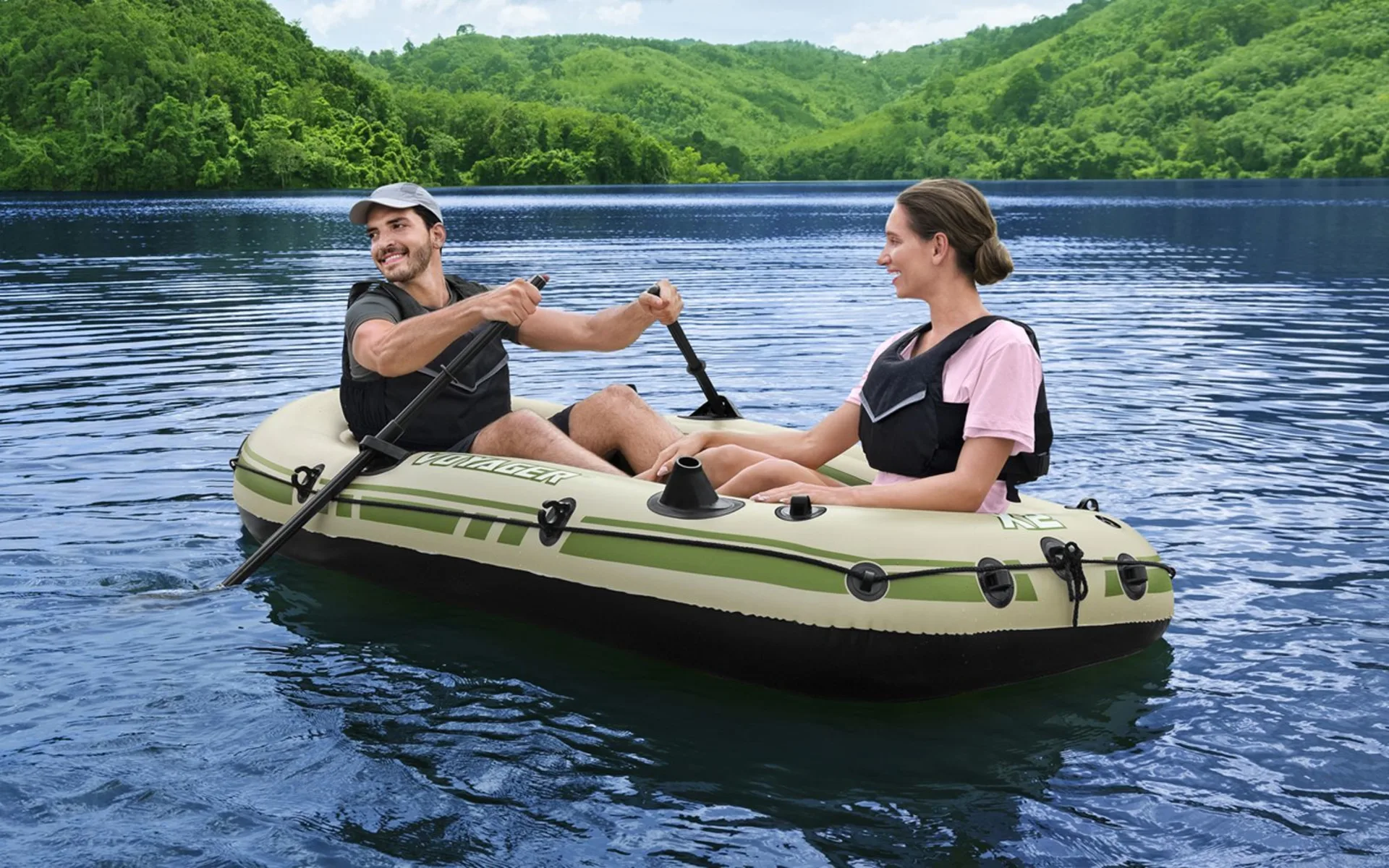 Schnappen Sie sich einen Ihrer Freunde und machen Sie sich bereit, die Stromschnellen mit dem Hydro-Force Schlauchboot Komplett-Set Voyager X2 zu bezwingen! Perfekt für bis zu 2 Erwachsene, können Sie sich auf das langlebige Material und das praktische Design verlassen, um eine sichere sowie lustige Fahrt zu erleben! Langlebiges und zuverlässiges Material: Dank des langlebigen Inflata-Shield -Materials können Sie sich sicher zu jeder Zeit auf dem Wasser sicher fühlen. Dieses spezielle Material ist pannensicher, minimiert die Überdehnung und verbessert die Griffigkeit. Ruder und zusätzliche Funktionen: Das aufblasbare Schlauchboot verfügt über integrierte Angelrutenhalter und robuste Ruder, sodass sie sich entweder mühelos fortbewegen oder ganz entspannt angeln können. Die Ruderklemmen sorgen dafür, dass die Ruder an Ort und Stelle bleiben und nicht unterwegs verloren gehen. Bequemes und kompaktes Design: Der aufblasbare Boden sorgt für zusätzlichen Komfort und macht die Fahrt noch angenehmer. Nach Ihrem Ausflug, trocknen Sie das Schlauchboot gründlich ab, falten Sie es zusammen und verstauen Sie es mühelos in der mitgelieferten Tragetasche!