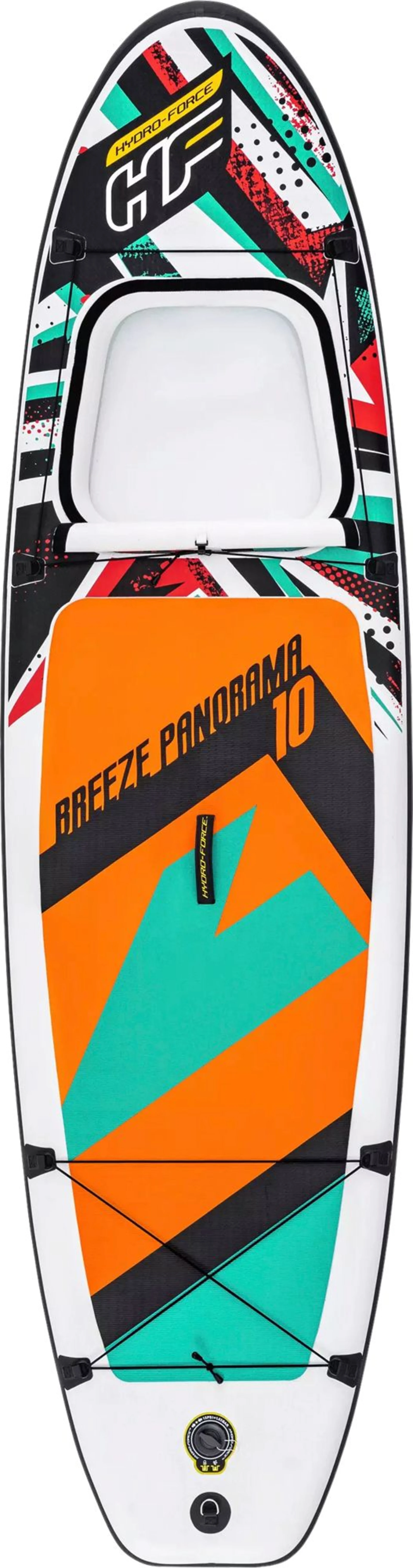 Das Hydro-Force Stand-Up Paddelboard Set Breeze Panorama ist bereit für Action! Mit seinem integrierten Fenster bietet dieses Paddelboard ein einzigartiges Erlebnis auf dem Wasser. Du kannst durch das Fenster auf das Wasser unter dir sehen und die Fische und andere Wassertiere beobachten. Wenn du das Fenster verschließen möchtest, kannst du hierfür die mitgelieferte Abdeckung verwenden. Dieses Allround-Board besitzt die perfekte Form für flache Gewässer und geringen Wellengang. Langlebige Konstruktion: Das DropStitch -Material auf der Innenseite des Boards macht es extrem starr und langlebig, ähnlich wie ein Hard-Side-Board, und macht es dennoch leicht, tragbar und einfach zu verstauen.