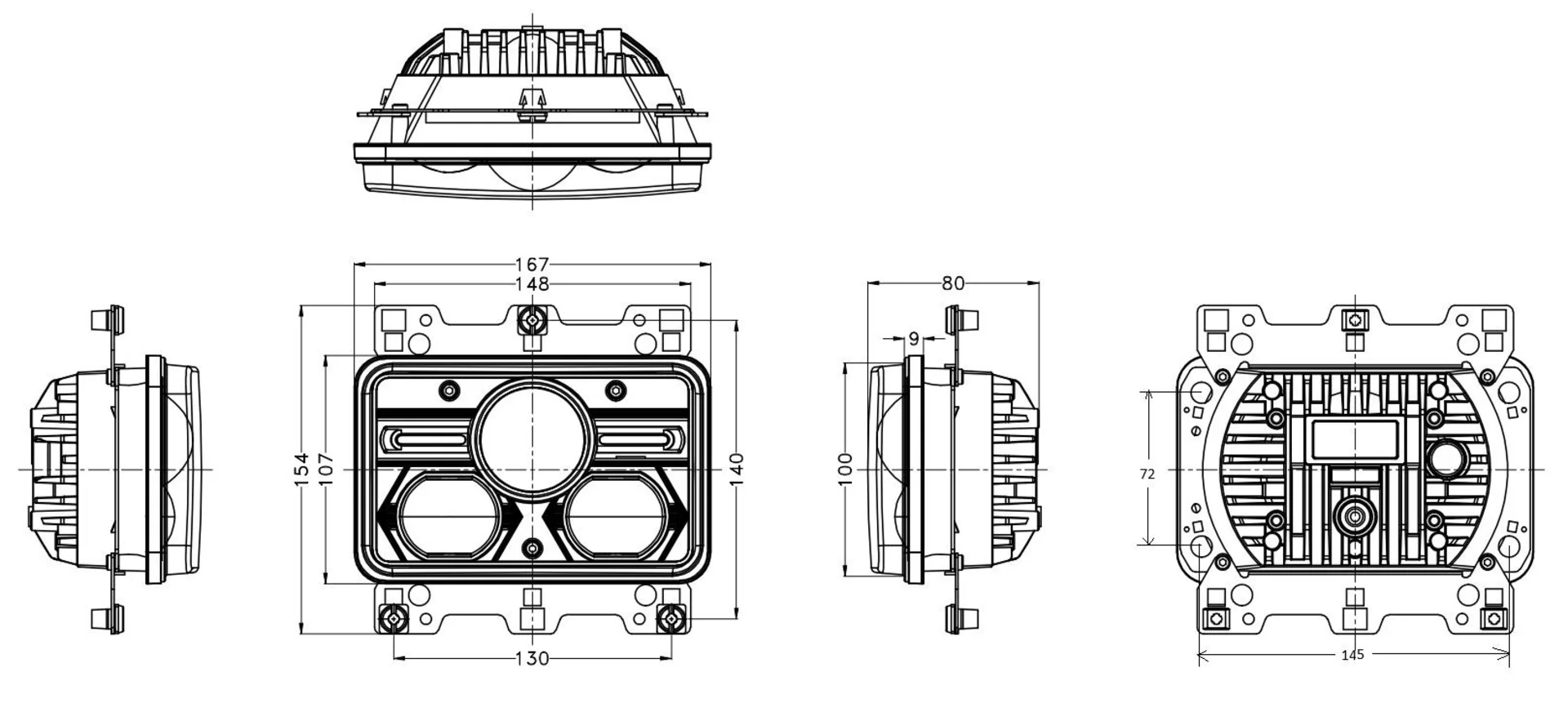 Der Bi-LED Einbauscheinwerfer von H-TEC mit Strassenzulassung kann als Nachrüstung der bekannten Halogenscheinwerfer mit den Massen 4 x 6“ eingebaut werden.