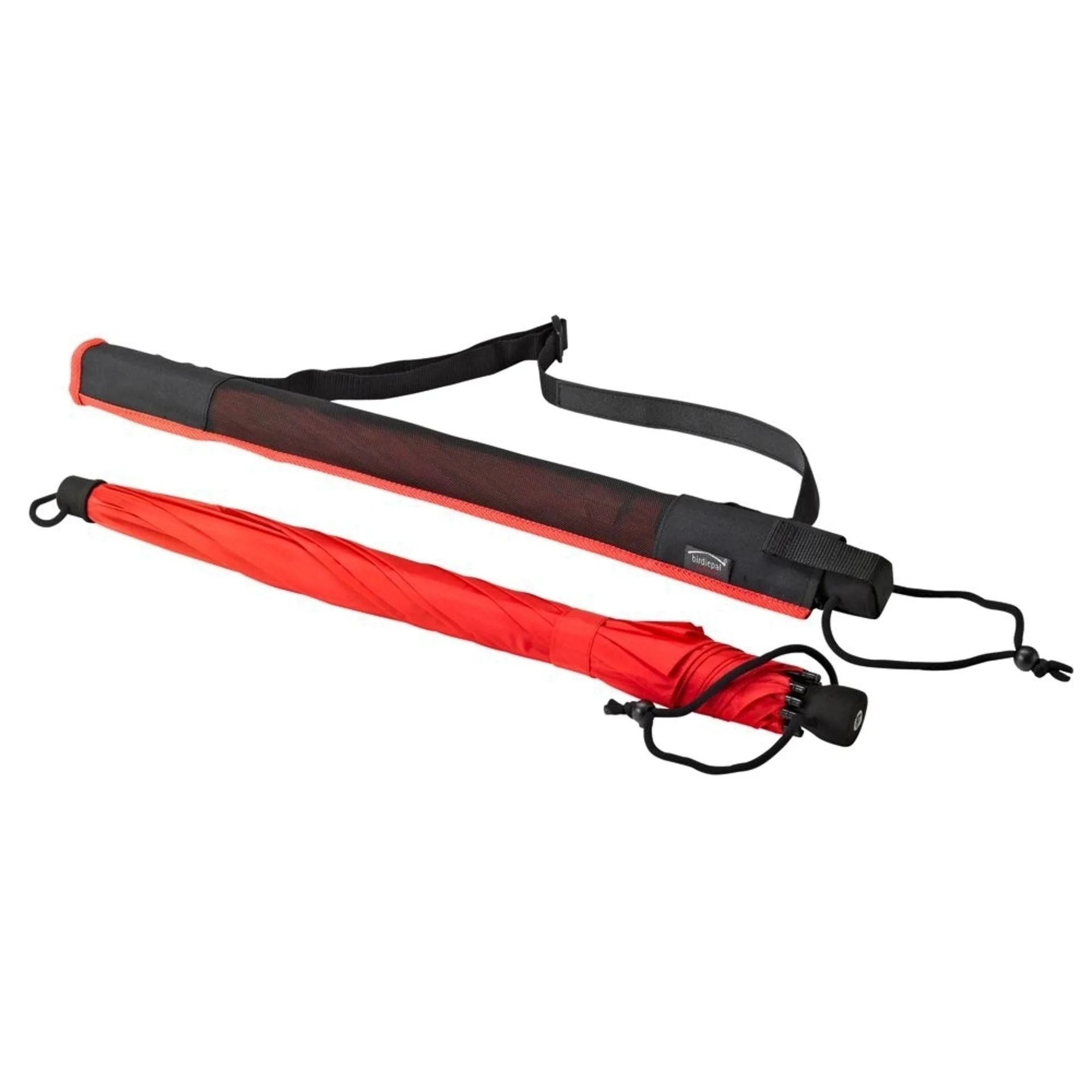 Jeder Schirm hat eine praktische, faltbare Umhängehülle mit verstellbarem, rutschfestem Gurt und Netzeinsatz, in der der nasse Schirm aufbewahrt wird und Ihre Kleidung trocken hält. Damit ist der birdiepal outdoor auch für den täglichen Gebrauch ideal.