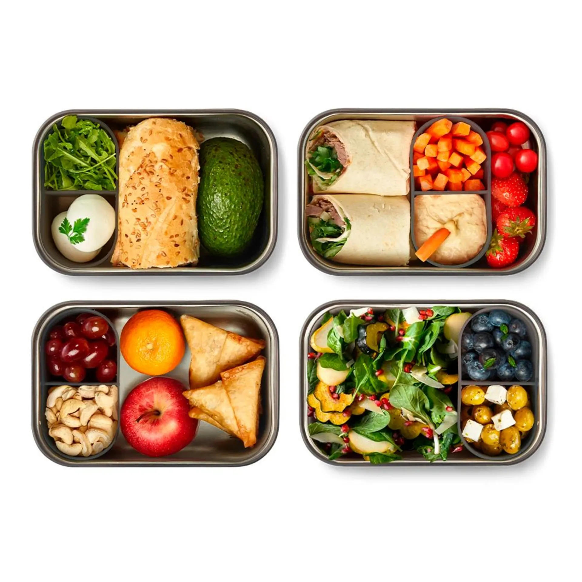 Die große Sandwichbox hat eine Höhe von 7,5 cm und ist daher optimal für Brötchen und Baguettes, sowie auch für Obst wie Äpfel und Orangen, geeignet. Zudem besitzt diese einen praktischen Silikonteiler mit 2 Fächern, so dass auch das Obst, Gemüse oder Dips sicher darin aufbewahrt werden können. Die umlaufende Silikondichtung sorgt für lange Frische und das einfache Verschließen der Box.