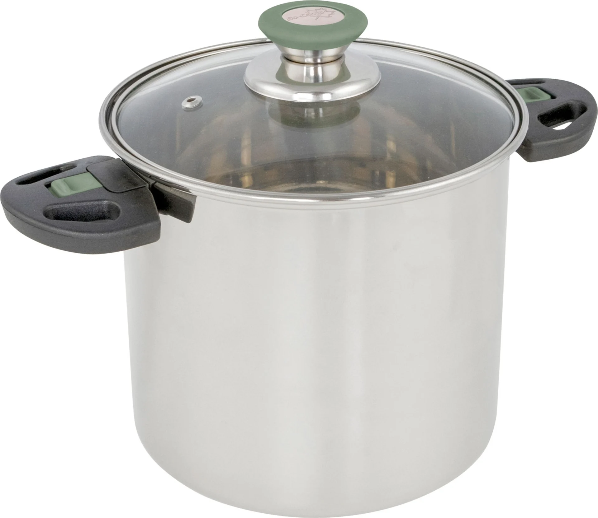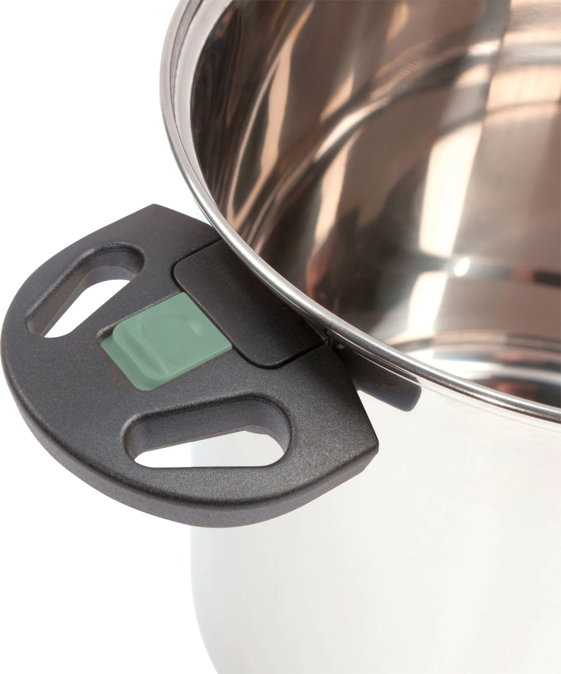 Jeder Topf hat einen Glasdeckel mit hitzebeständigem Knauf. Darüber hinaus hat jeder Topf hitzebeständige und einklappbare Handgriffe. Diese Griffe lassen sich nach dem Gebrauch einfach einklappen, so dass die Töpfe kompakt zu verstauen sind. Sparen Sie bis zu 40% Platz! Die Töpfe sind schmal und hoch und damit bestens geeignet für den begrenzten Platz auf Gasbrennern. Kann auf Gas-, Keramik- und Elektroherden verwendet werden.