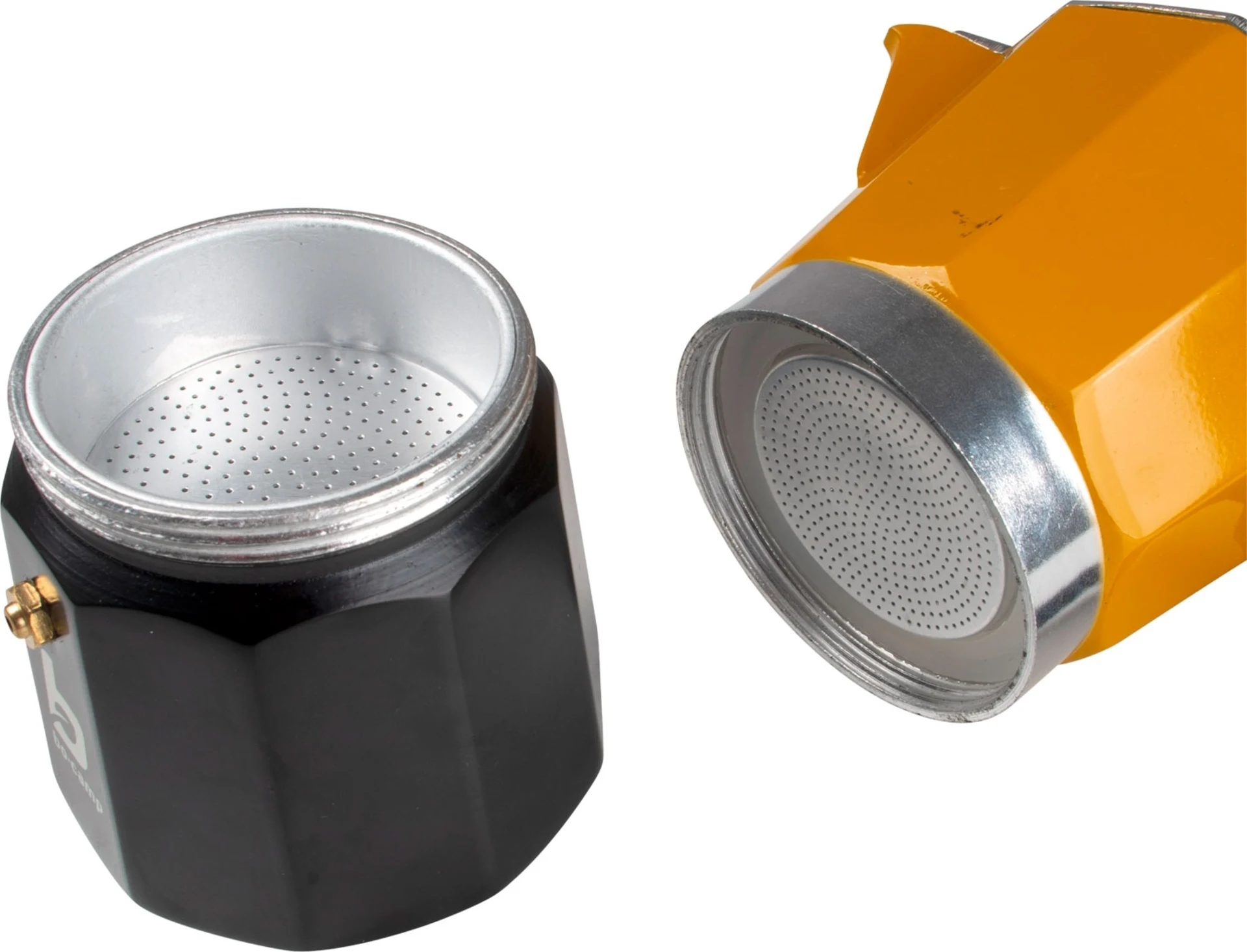 Ein trendiger Aluminium-Kaffeezubereiter in einem coolen Look.