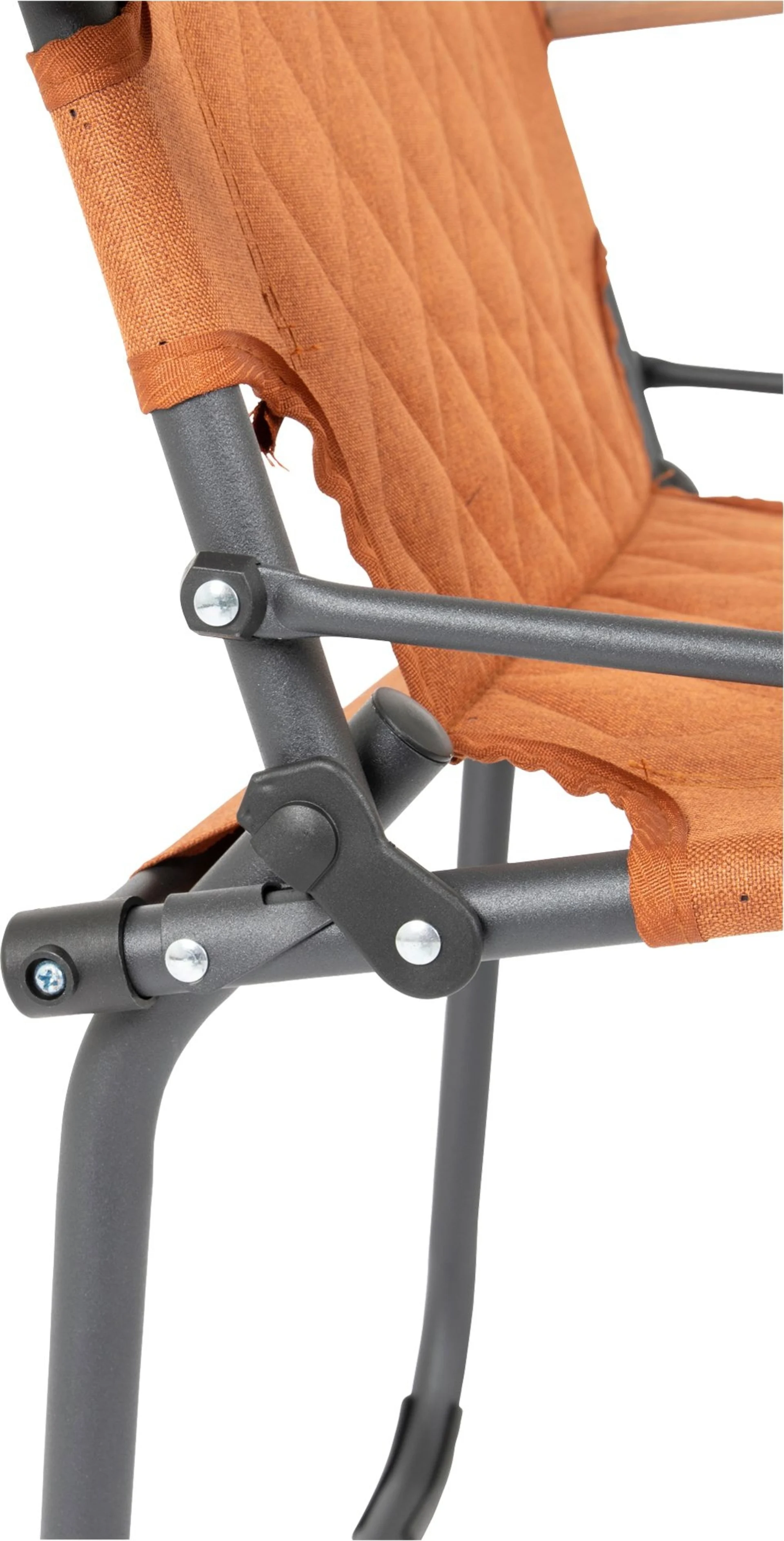Der Klassiker in modernem Industrie-Look. Ein Stuhl, der Stil, Komfort und Funktionalität vereint. Ausgestattet mit einer gepolsterten Cationic-Polsterung für ultimativen Komfort, einem leichten Aluminiumrahmen und Armlehnen aus Teakholz. Darüber hinaus haben die Nähte ein modernes Muster. Außerdem ist dieser Stuhl mit zusätzlichen Stabilisatoren und einer Sicherung gegen ungewolltes Zusammenklappen ausgestattet. Kompakt zum Mitnehmen. Ein idealer Stuhl für den Garten oder Camping, aber auch auf dem Balkon und im Wohnzimmer.