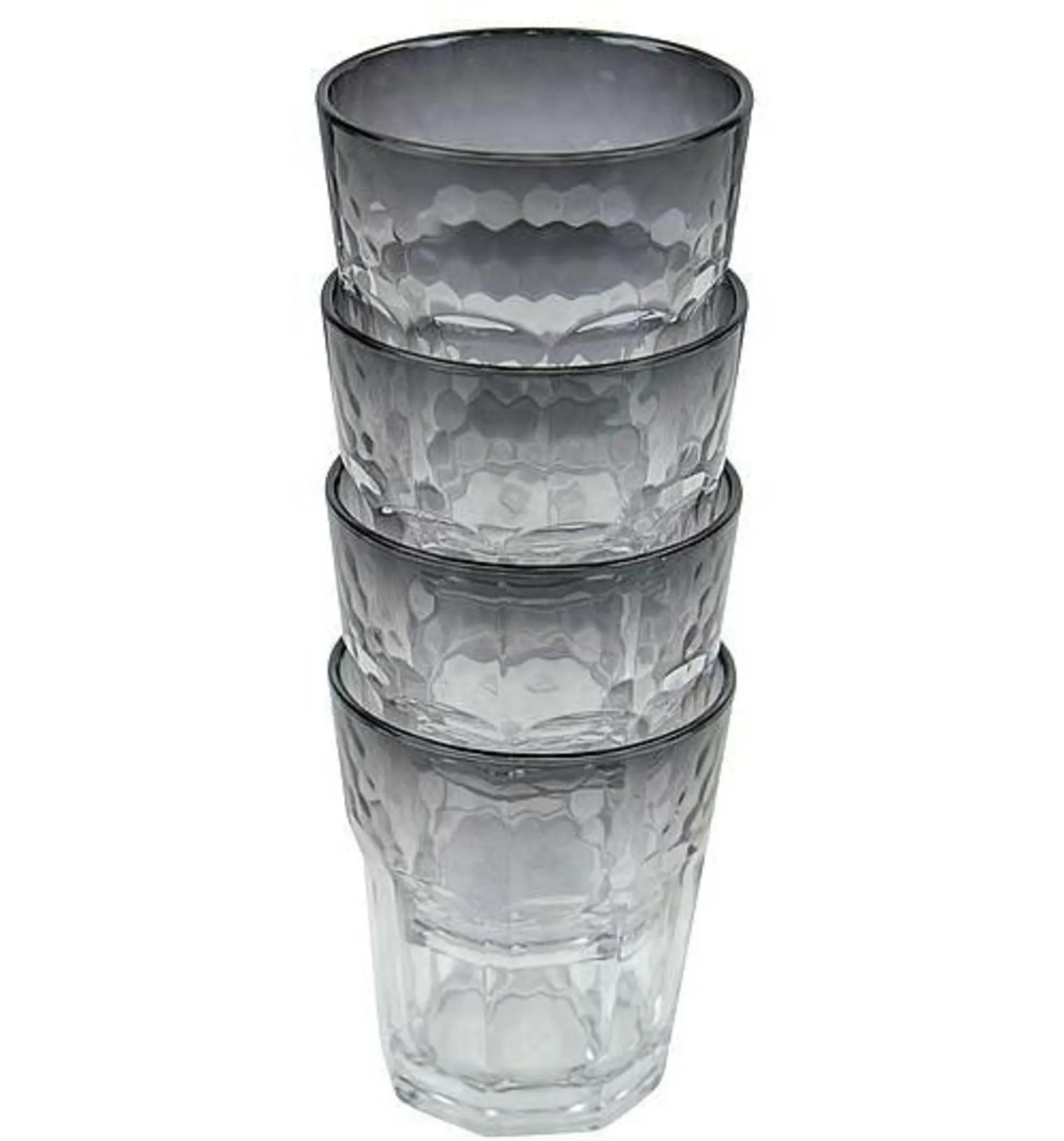 Ein stilvolles Set aus Wein- und Limonadengläsern. Das Set hat einen Rauch-Effekt, der ihm ein luxuriöses Aussehen verleiht. Darüber hinaus sind die Gläser aus stabilem Kunststoff gefertigt. Das macht sie kratzfest und leicht. Sie sind auch spülmaschinenfest.