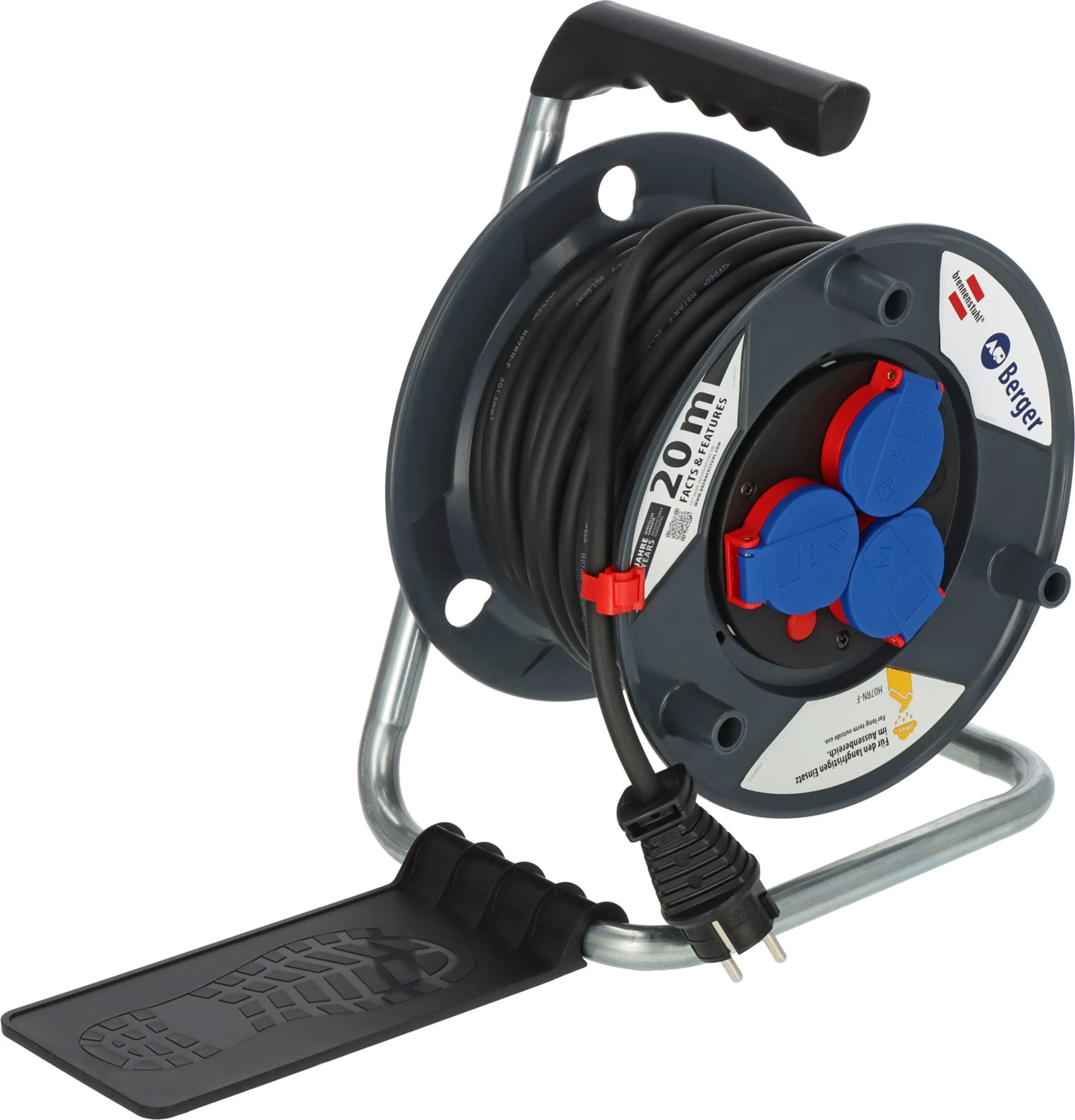 Die 20m lange Kabeltrommel mit H07RN-F 3G1,5 Kabel ist ideal für den Einsatz im Freien und bietet eine Schutzart von IP44. Sie eignet sich besonders für den Baustellen- und Gewerbeeinsatz, dank des robusten Gummi-Neoprenkabels.