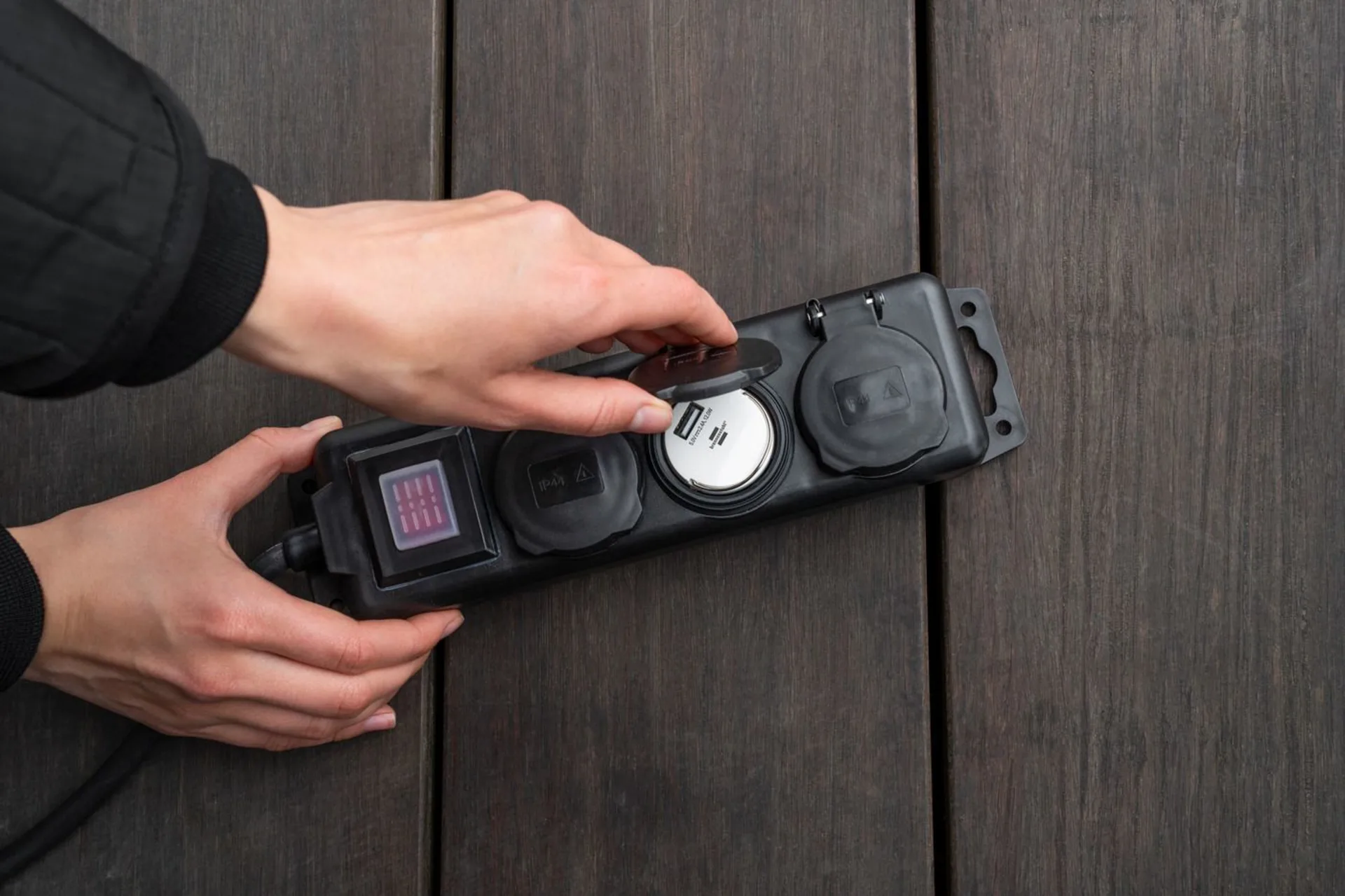 - Ideal für Steckdosenleisten IP 44 und Kabeltrommeln, auch bei geschlossenem Deckel