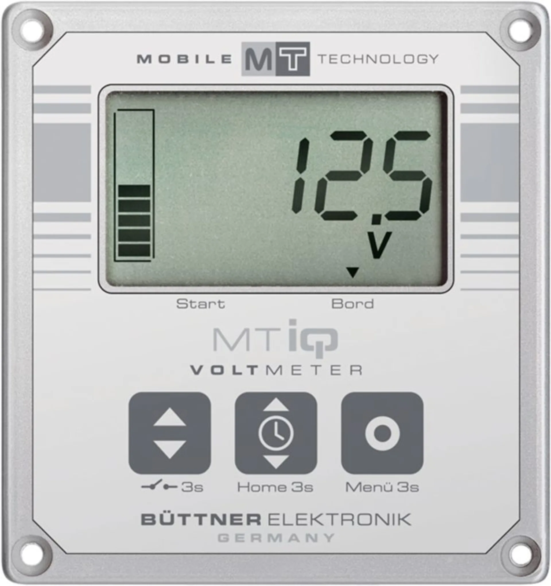 Dieses LCD- Voltmeter misst die Spannung von Start- und Bordbatterie sowie Anzeige von Datum und Uhrzeit. Darüber hinaus verfügt das Gerät über einen programmierbaren Schaltausgang, der als Zeitschaltuhr oder für die Spannung als Schaltkontakt genutzt werden kann.