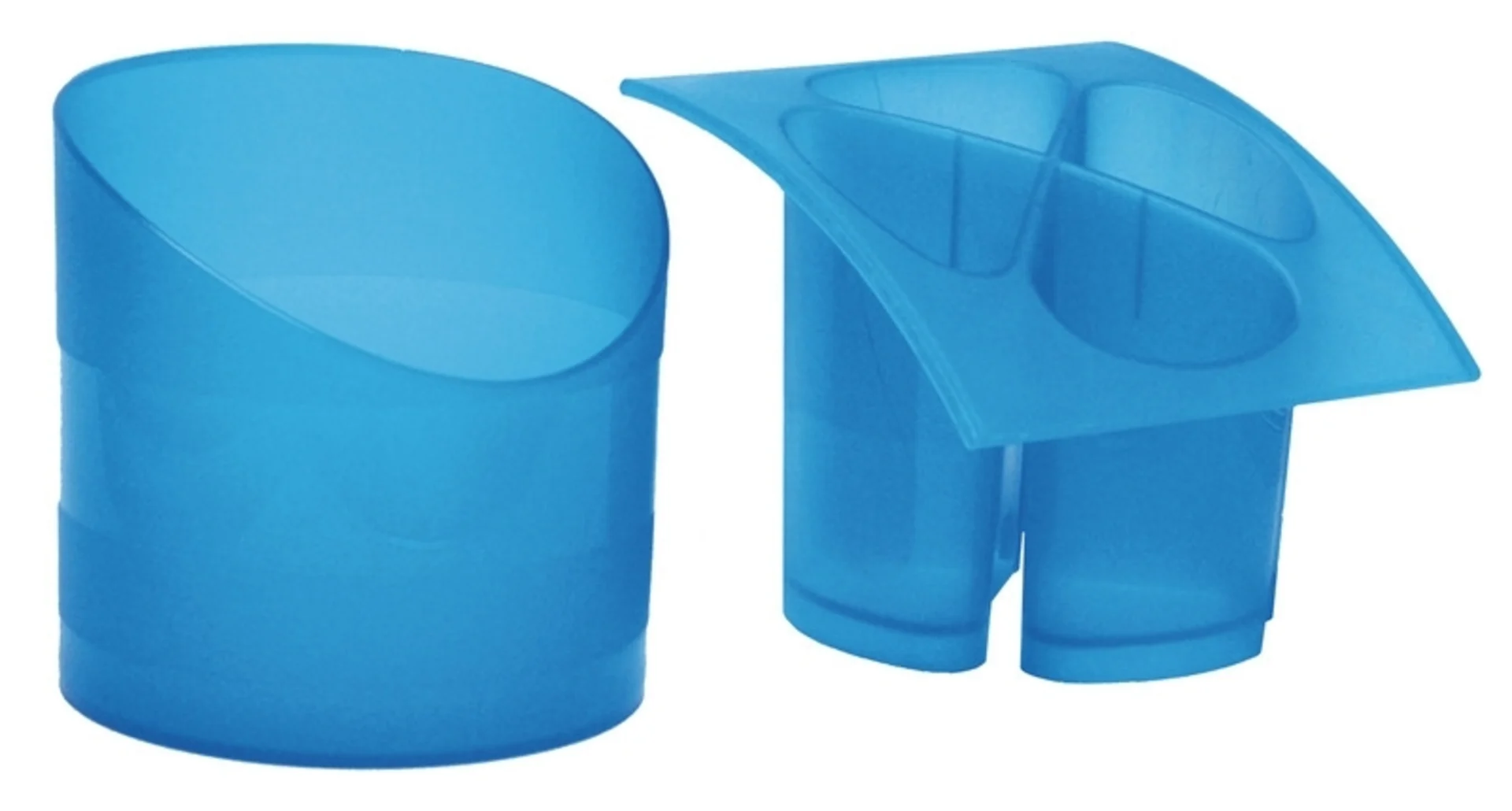 Bestecktrocker mit 14 cm Durchmesser und 15 cm Höhe bietet ausreichend Platz um Messer, Gabel und Löffel zu trocknen. 2-teilig mit Auffangbehälter für das abtropfende Wasser.