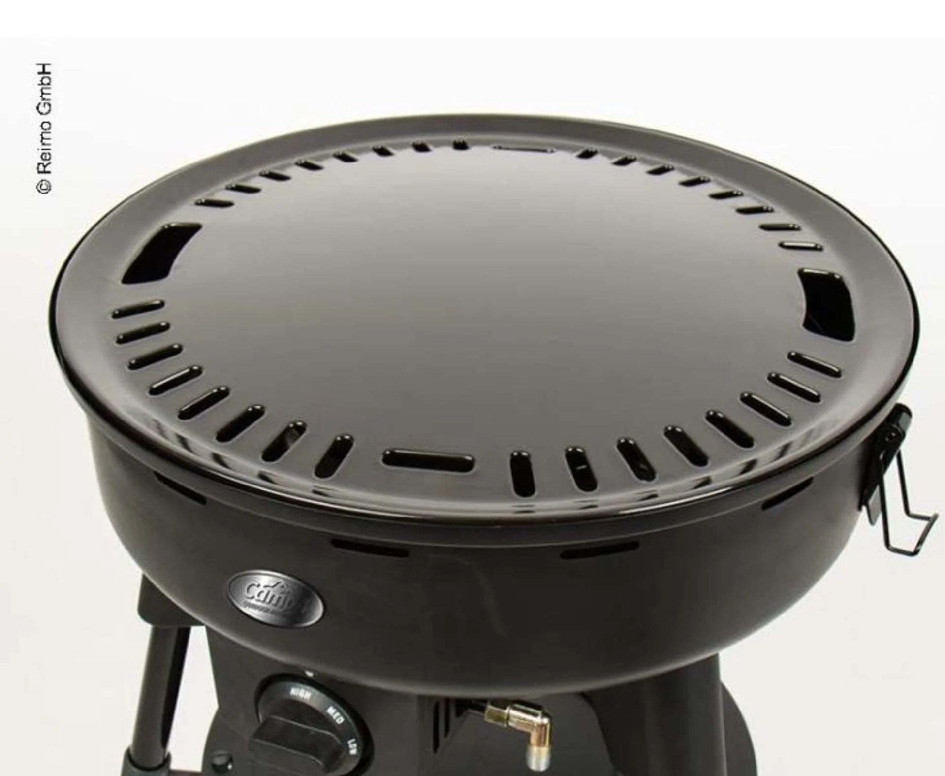 Gasgrill mit 3 breiten Kunststoff-Standfüßen für einen sicheren Stand.