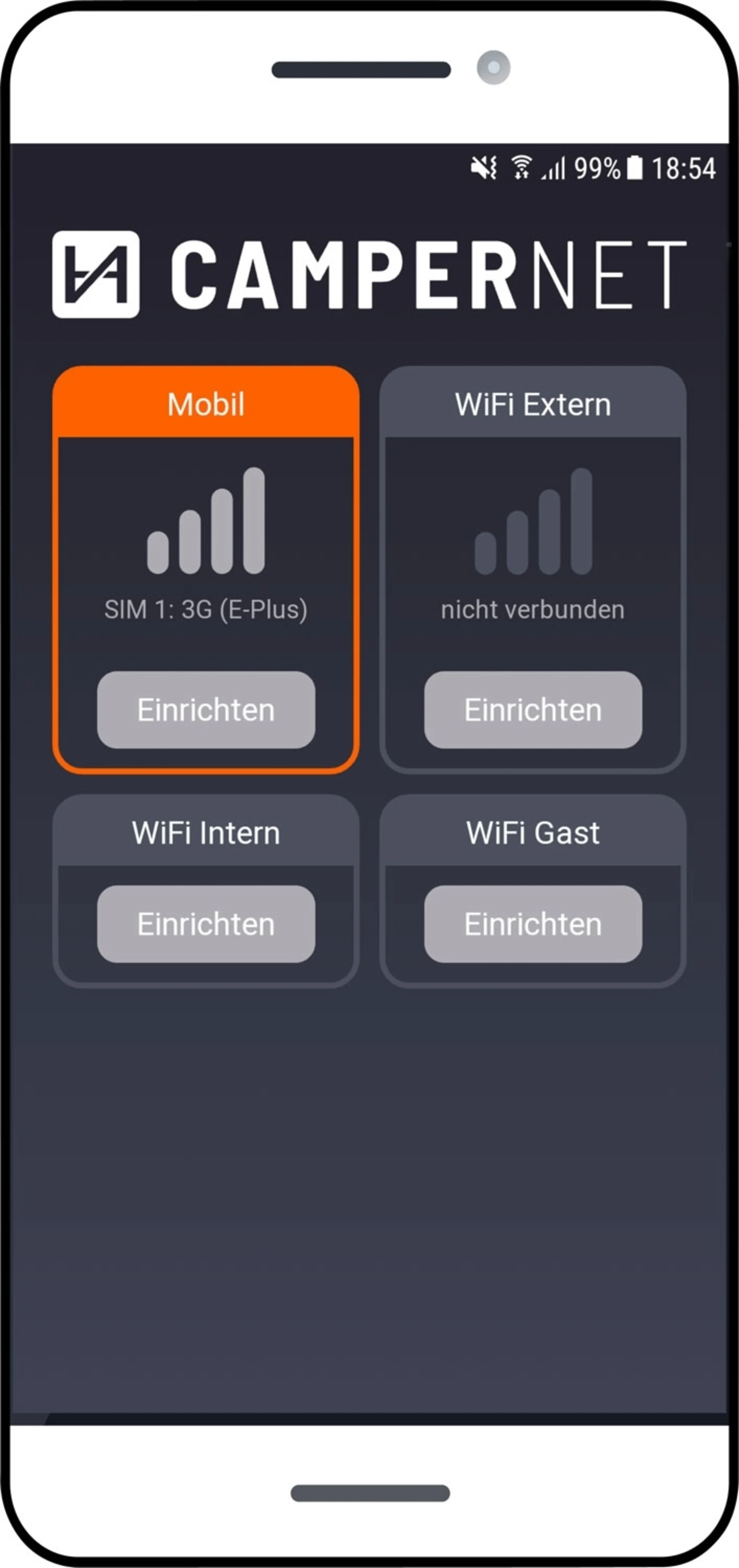 Filme streamen, Nachrichten schauen Musik hören und Emails abrufen. Mit dem Campernet erleben Sie Unterhaltung auf Reisen mit dem Komfort von Zuhause. Die leistungsstarke Router-Elektronik gepaart mit abgestimmten Antennen ermöglicht allen Mitreisenden, noch dort zu Surfen, wo das Handy bereits versagt. Dank Dual-SIM wechseln Sie bequem zwischen Ihrer Zweit-SIM-Karte und der günstigen Auslandsprepaidkarte. Oder Sie empfangen Free WiFi über das sichere Campernet.