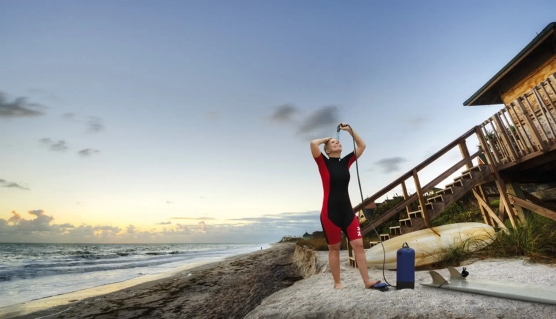 - Mit Fußpumpe, Duschkopf und 195 cm Schlauch