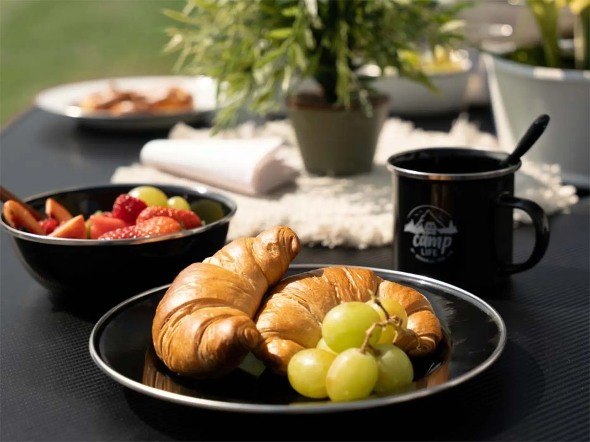 Unser stilvoller Emaille-Teller mit einem Durchmesser von 22 cm ist die ideale Ergänzung für jeden Camper. Hergestellt aus emailliertem Stahl, bietet er nicht nur eine ansprechende Optik, sondern auch außergewöhnliche Langlebigkeit und Widerstandsfähigkeit. Der Teller ist hitzebeständig und eignet sich hervorragend für den Einsatz am Lagerfeuer oder beim Picknick. Die glatte Oberfläche sorgt dafür, dass Lebensmittel nicht haften bleiben und erleichtert die Reinigung.