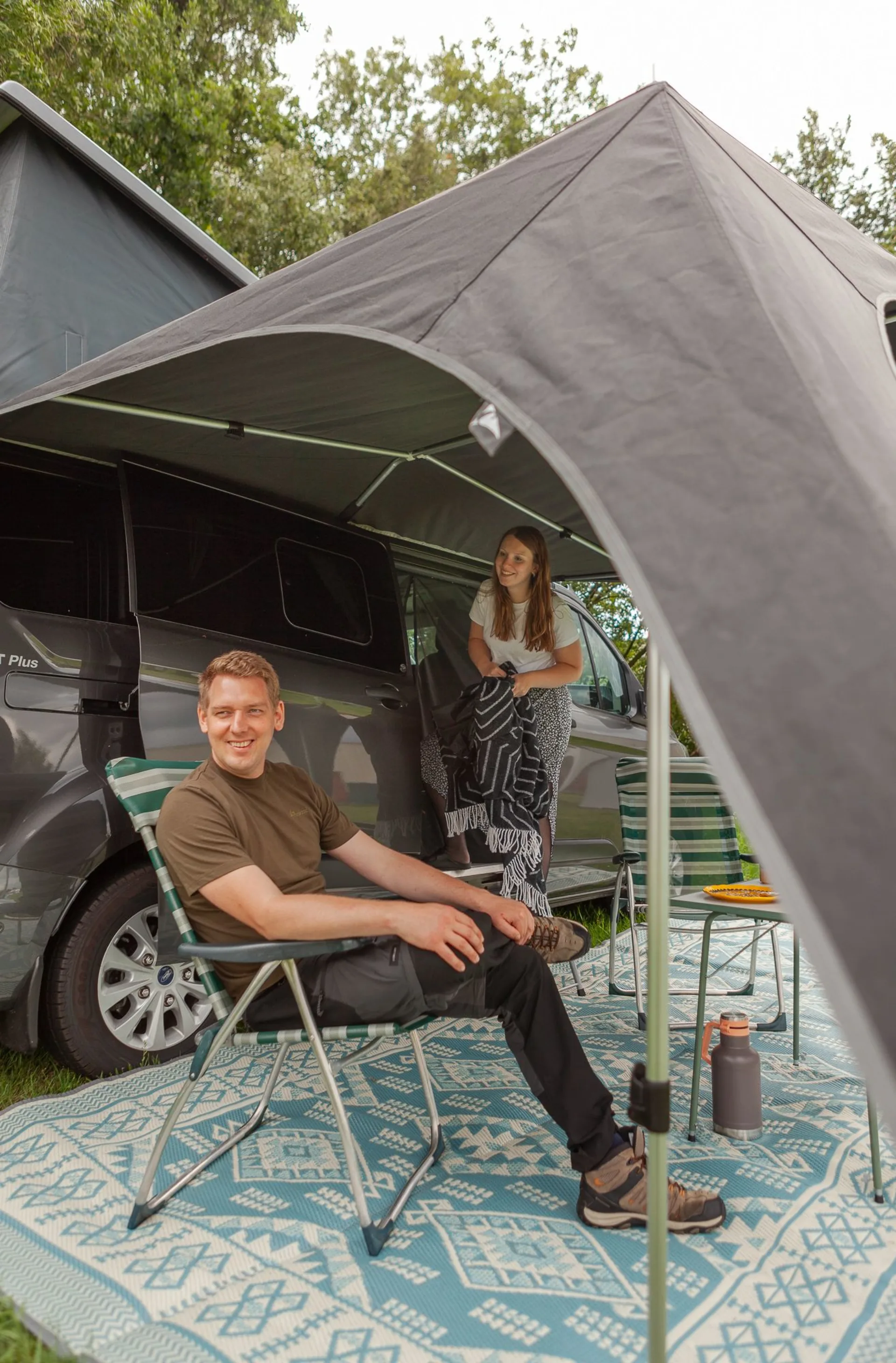 Mit der Outdoor-Matte von Campooz nimmst du dein Zuhause ein ganz kleines Stück mit in den Urlaub. Durch die dunkle, als auch helle Oberfläche, kannst du die Matte, ganz im Campooz-Stil, an die Farbe deines Sonnensegels anpassen. Somit gibst du deinem Nest in der Fremde einen persönlichen Touch und rundet es den Gesamteindruck ab. Wenn du am Morgen barfuß aus deinem Wohnwagen oder Campingbus trittst, setzt du deinen Fuß auf ein dicke, kühle Matte und hast du keinen Steine oder Sand zwischen den Zehen. Die Matte besteht aus Polypropylen, das schnell trocknet und einfach zu reinigen ist. Mit einer solchen Matte unter dem Sonnendach nimmst du weniger Schmutz mit in den Caravan oder Camper und ist der Verbleib auf dem Campingplatz noch angenehmer und unkomplizierter.