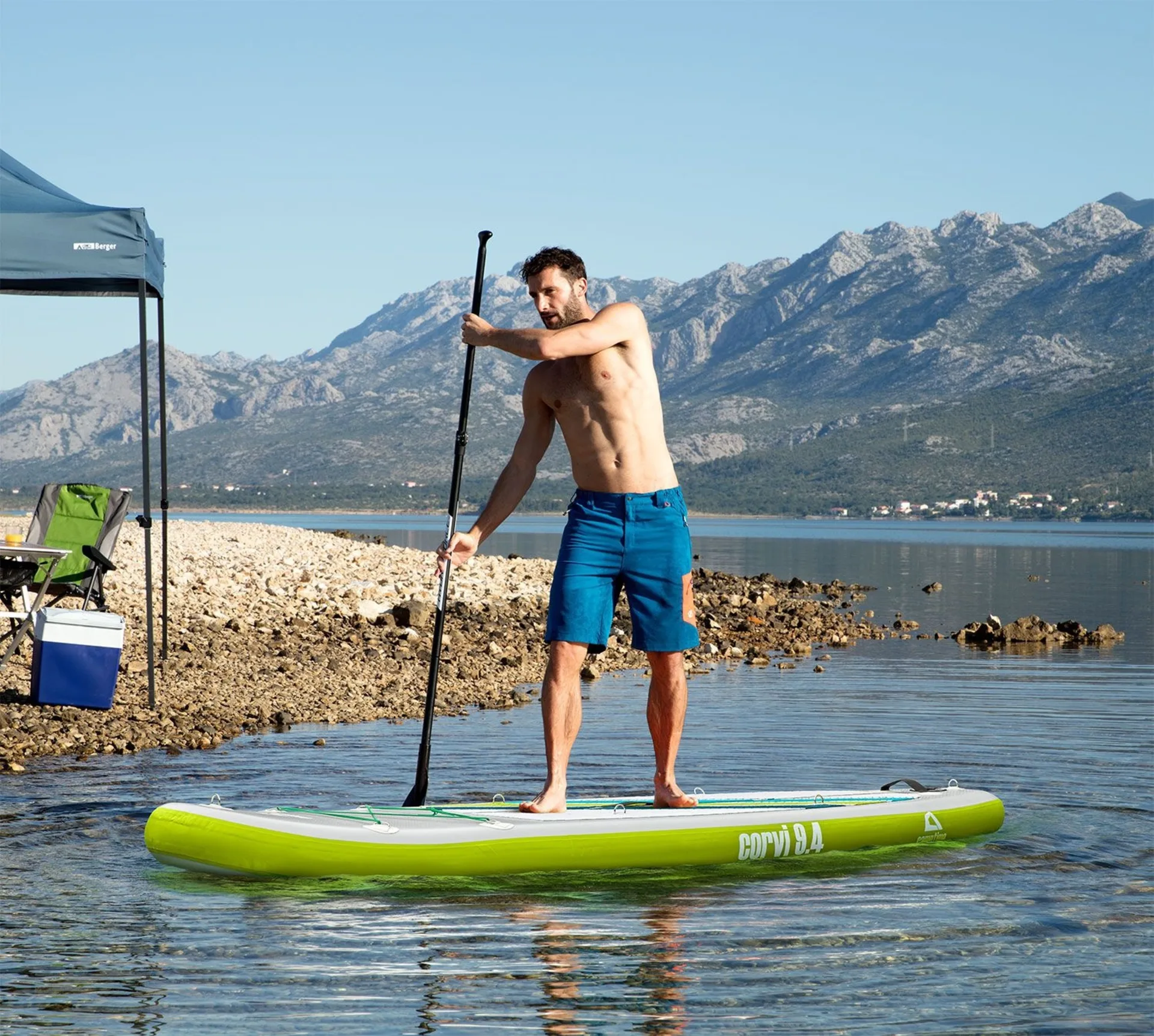 Das Corvi 9.4 der Marke Camptime ist ein fantastisches Allround-Board mit einer Belastbarkeit bis zu ca. 120 kg. Mit einer Länge von 285 cm hat auf dem Board ein Erwachsener ganz leicht Platz. Mit Hilfe dieses Surfboards kann man den Reiz der Natur auf die schönste Weise genießen.