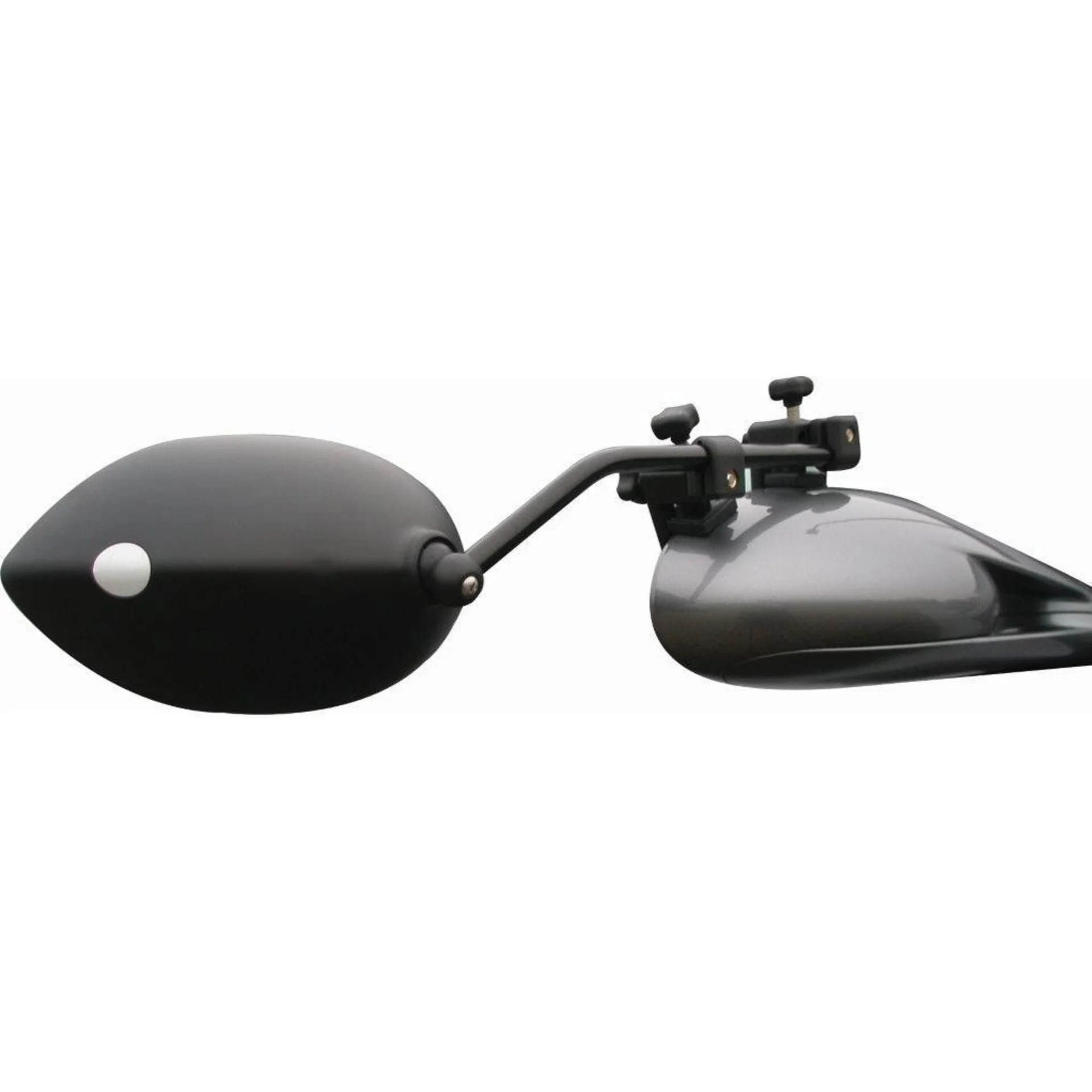 Das Besondere an der Aero-Serie sind die einzigartigen Chrom-Sicherheitsgläser, die rostfreien Schrauben aus Stahl sowie die Messing-Gewinde. Der aerodynamische Spiegelkopf passt sich perfekt der Sicht an und gleicht Vibrationen aus. Sicherer Halt durch Drehschrauben. Dank des flexiblen Klemmsystems passt der Spiegel auf fast alle Fahrzeugspiegel. Mit Konvex- und Planglas. Inklusive Transporttasche.