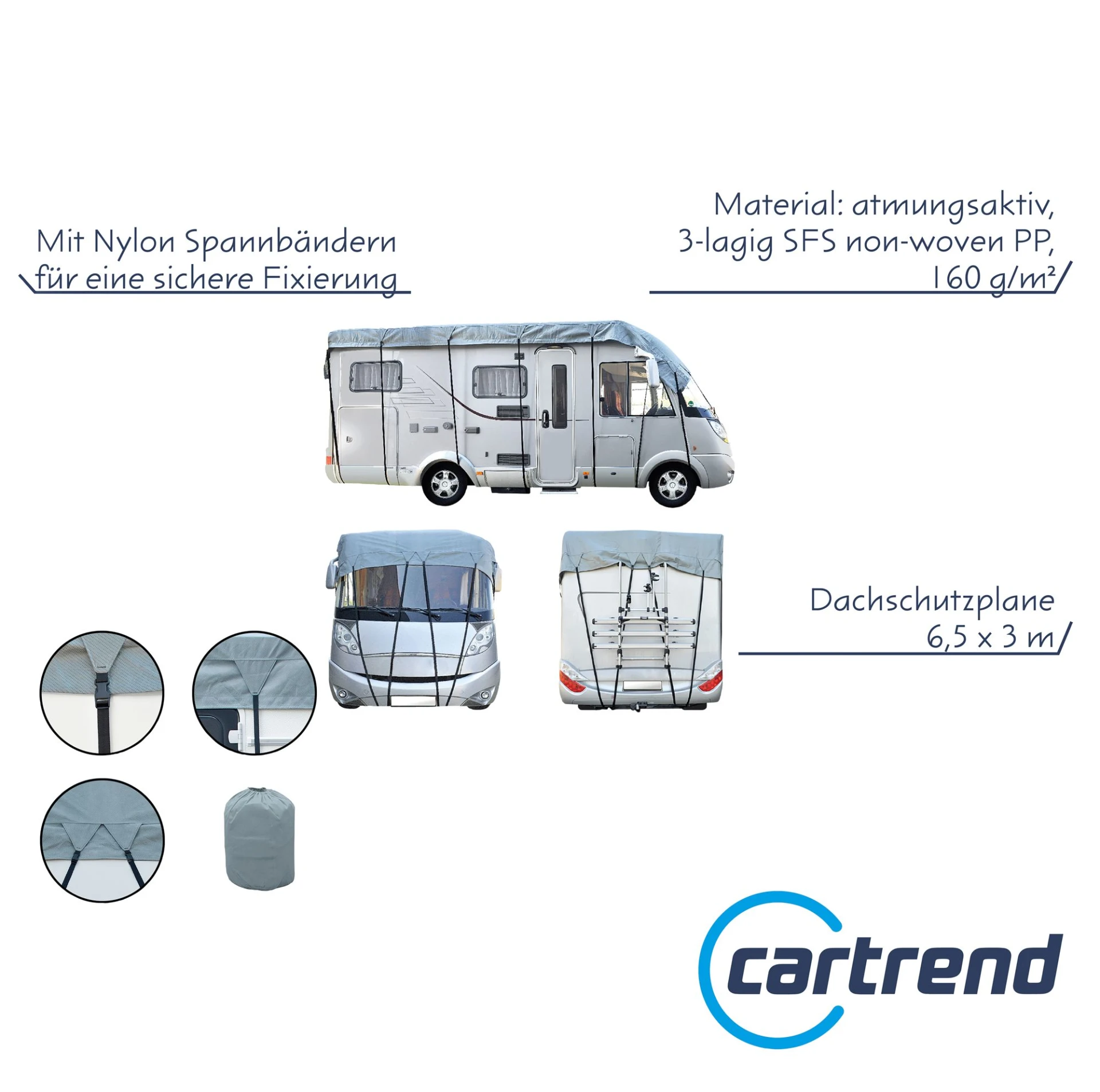 Gerade im Winter sind Wohnwagen und Wohnmobile Frost, Eis und Wind ausgesetzt. Umso wichtiger ist es, das Reisemobil davor zu schützen. Die cartrend Caravan Dachschutzplanen beugen solchen Einwirkungen vor und schützen Ihr Wohnmobil vor Schmutz und Nässe. Geeignet für den Gebrauch im Freien, aber auch in geschlossenen Gebäuden während der Winterperiode.