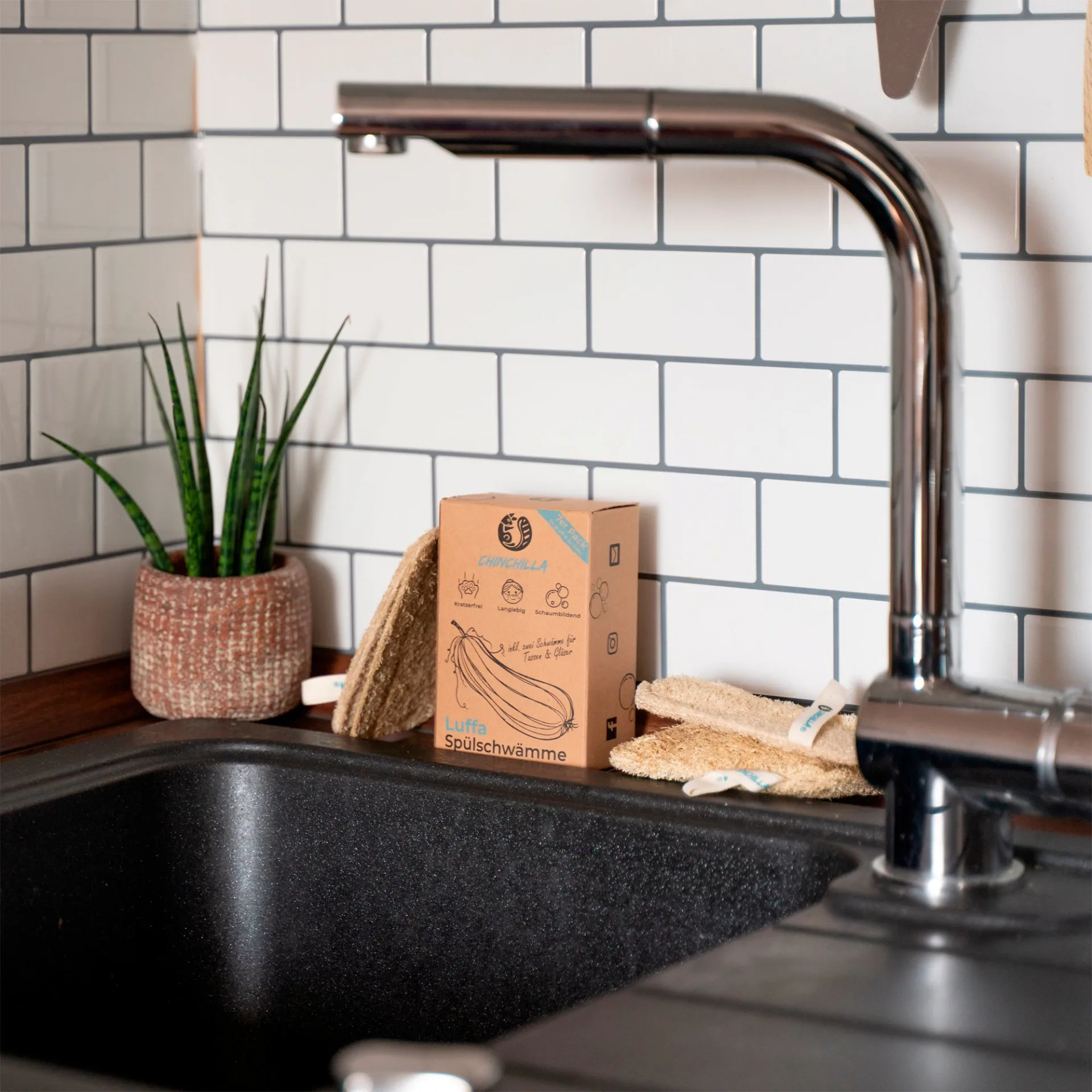 Die Chinchilla Küchenschwämme aus Luffa Schwamm und Baumwolle ermöglichen dir eine plastikfreie, saubere und einfache Reinigung von Geschirr, Oberflächen und mehr. Die Spülschwämme sind wiederverwendbar, waschbar und können nach ausgiebiger Benutzung einfach in den Bio-Müll oder auf den Kompost, da sie aus 100 % natürlichen Materialien bestehen – Deine Alternative zu herkömmlichen Haushaltsschwämmen aus Plastikmaterial!