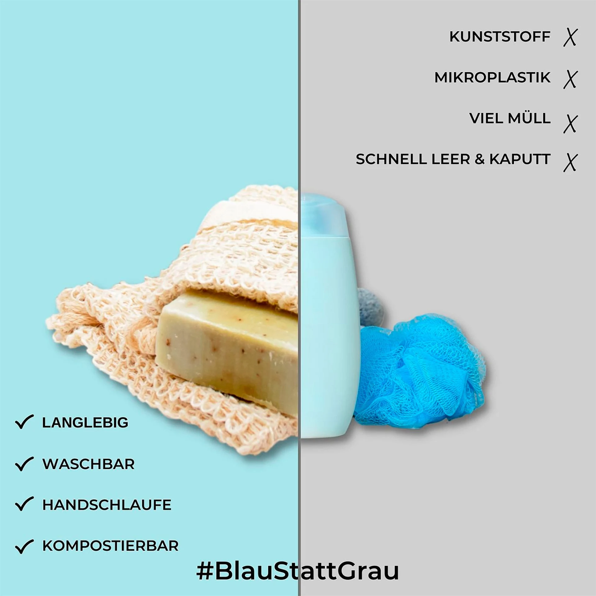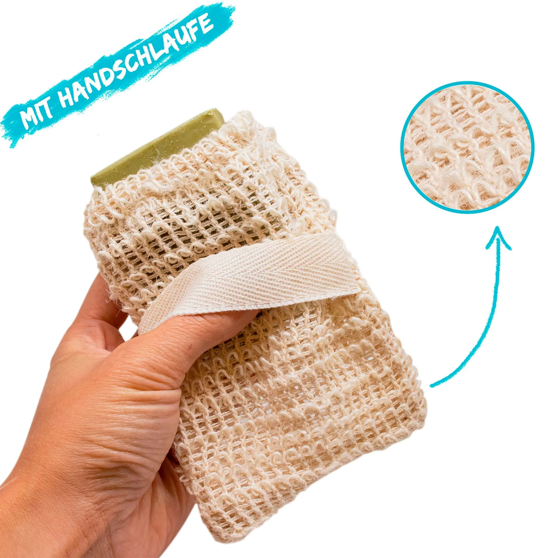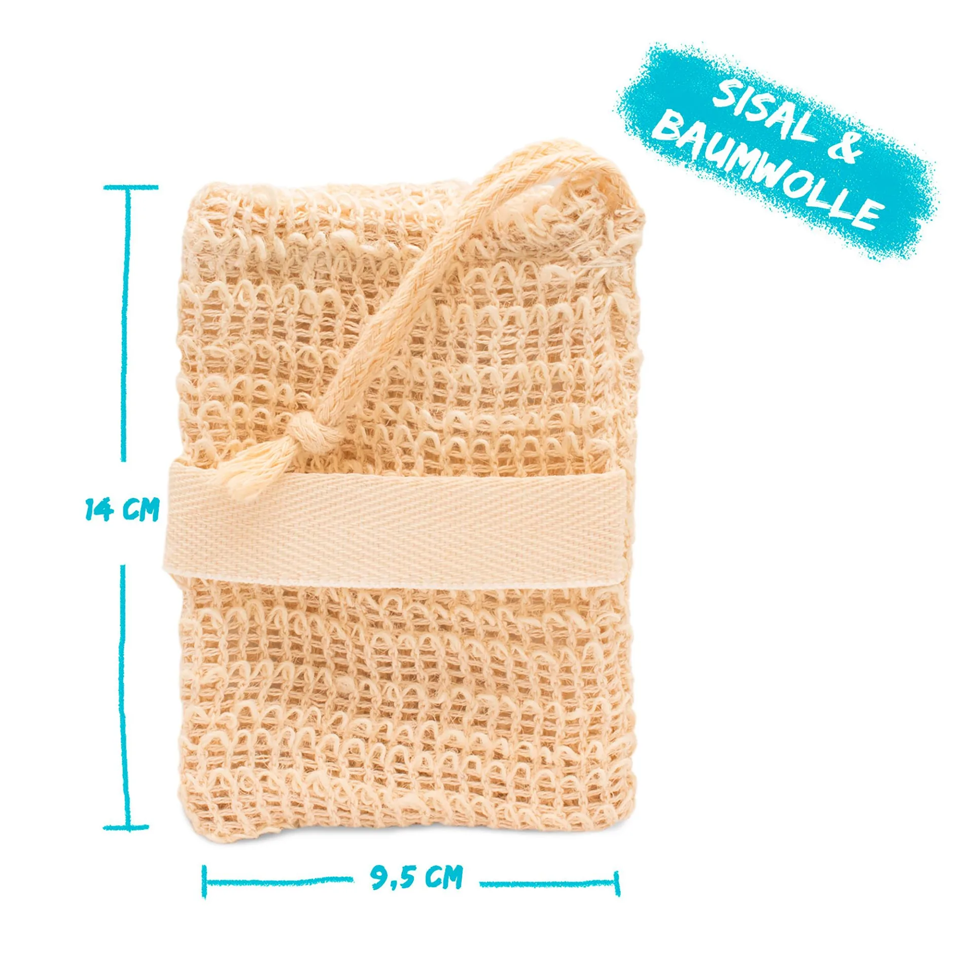 - Plastikfrei: Die nachhaltigen Seifensäckchen bestehen aus 100 % Sisal und natürlicher Baumwolle. Daher sind sie vegan, umweltfreundlich & kompostierbar. Die Seifenbeutel können einfach bei 30 °C in der Waschmaschine gewaschen und wieder verwendet werden.