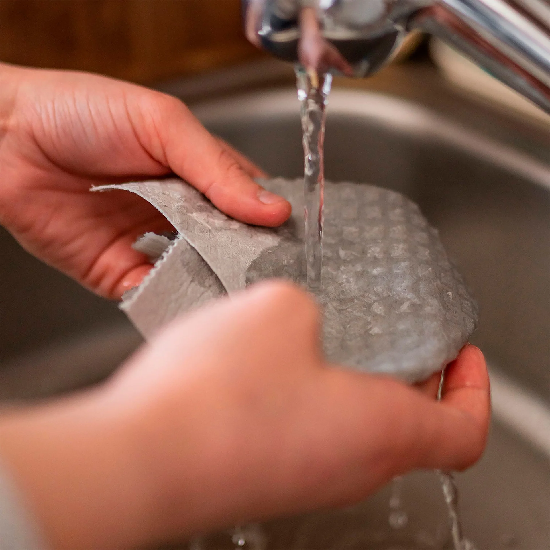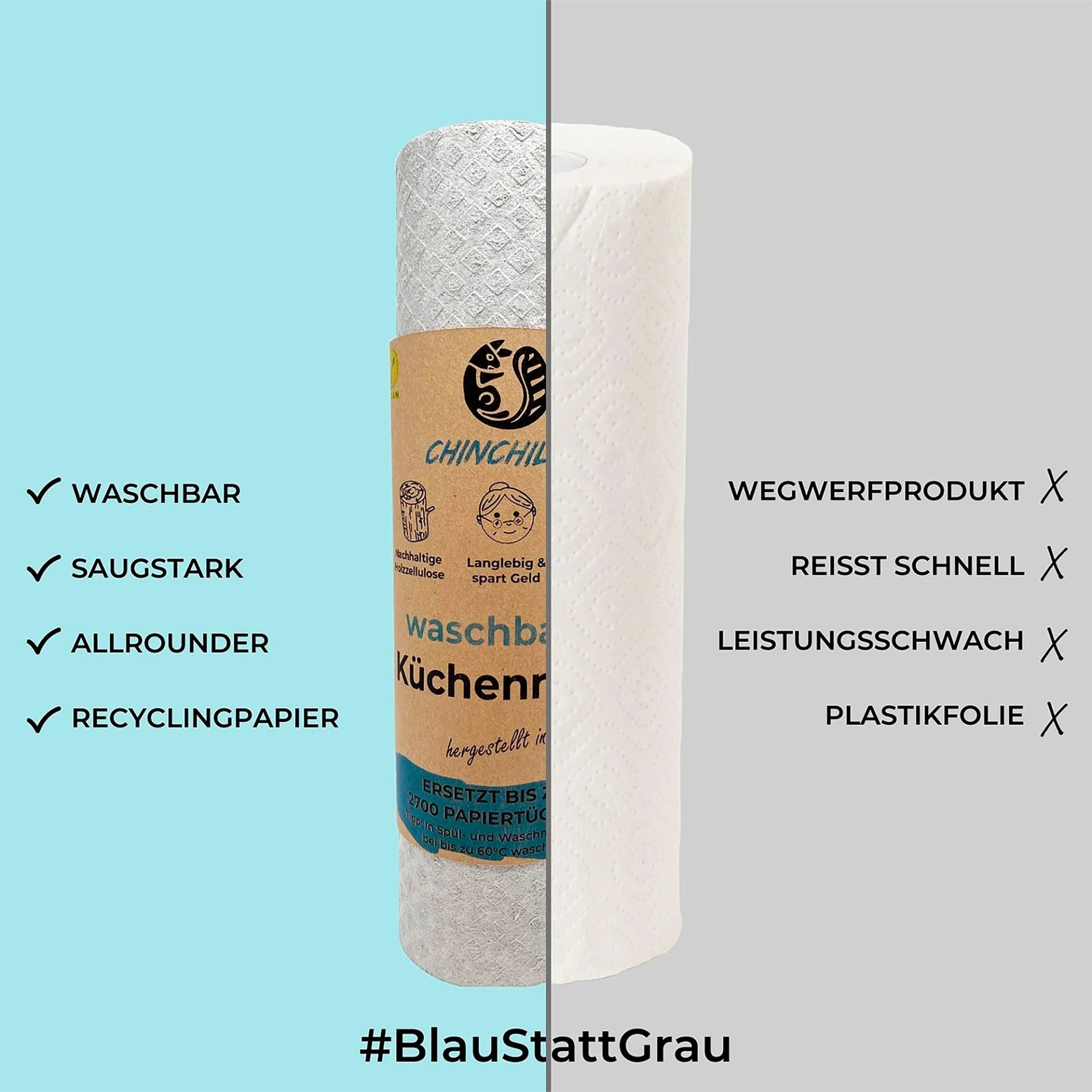 Die waschbare Küchenrolle aus 100 % natürlicher Holzzellulose und Baumwolle ist die umweltfreundliche Alternative zu herkömmlicher Einweg Küchenrolle oder Putztüchern aus Kunststofffasern. Die Tücher ersetzen bis zu 2700 Küchentücher und können ganz einfach in der Spül- oder Waschmaschine gewaschen werden, wodurch sie mehrfach wiederverwendbar sind.