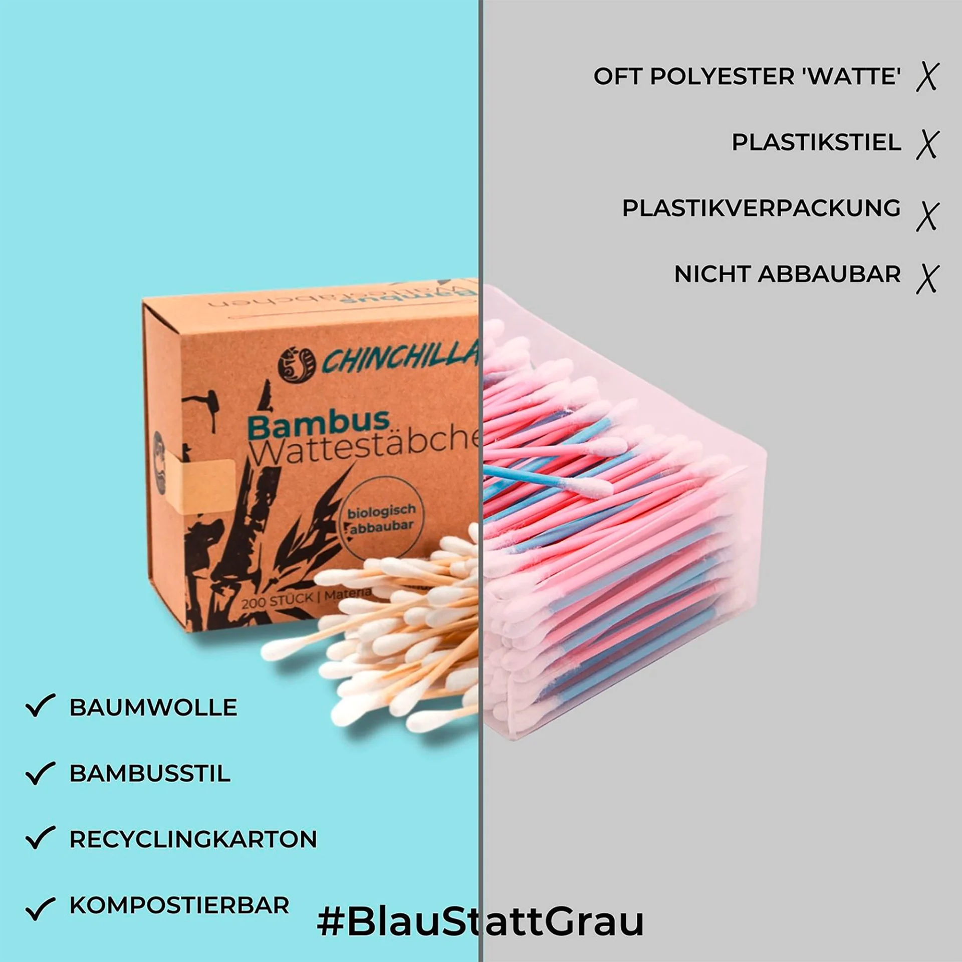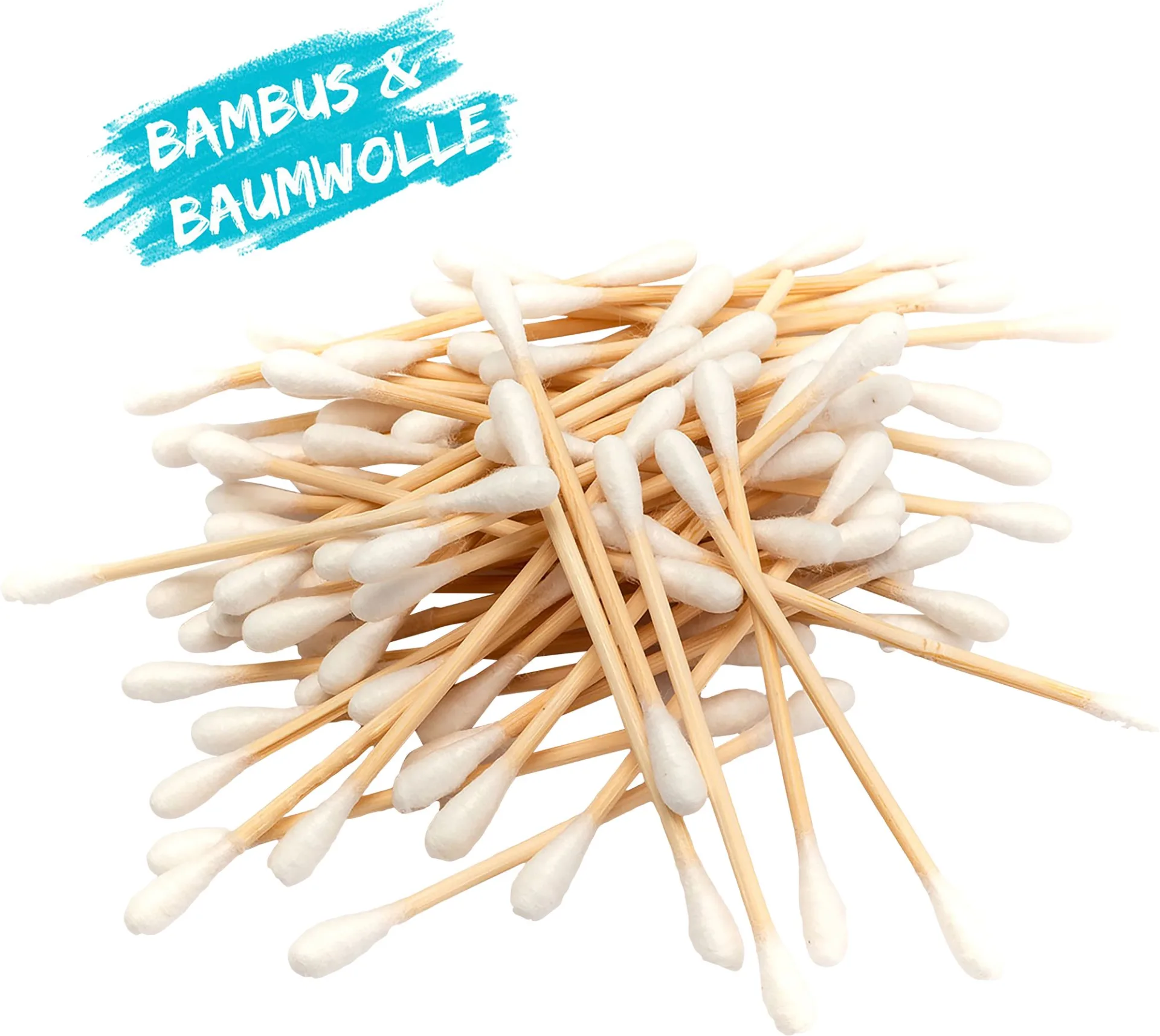 - Nachhaltiges Naturprodukt: Die Wattestäbchen im 200er-Pack bestehen aus 100 % biologischer Baumwolle & Bambus. Bambus ist ressourcenschonender, da er viel schneller wächst als Holz. Sie sind stabil, weich und die Alternative zu herkömmlichen Plastik Wattestäbchen.