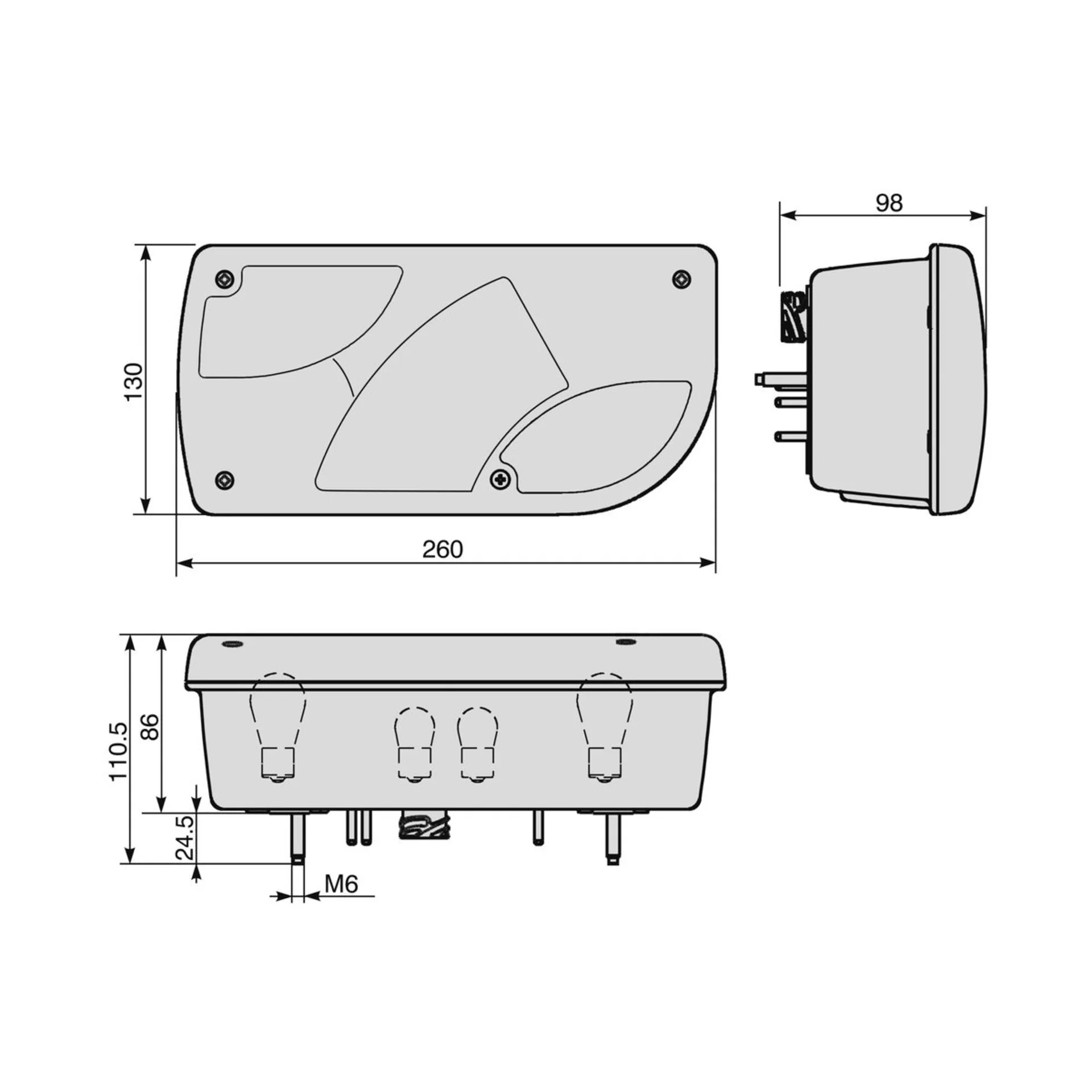- 260 x 130 x 110.5 mm ohne Dreieckrückstrahler